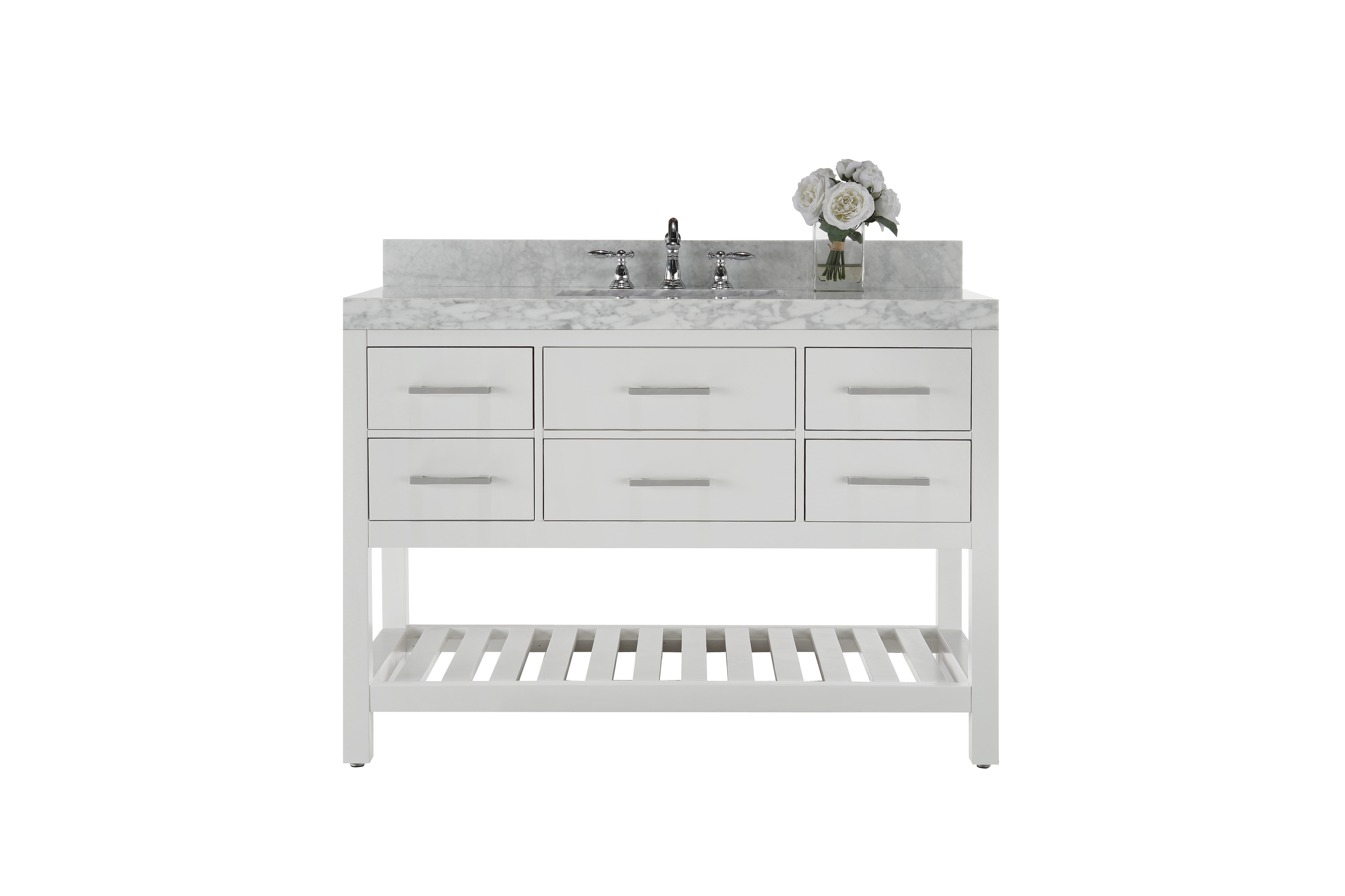 2.4-inch Italian Carrara White marble top with 4-inch backsplash