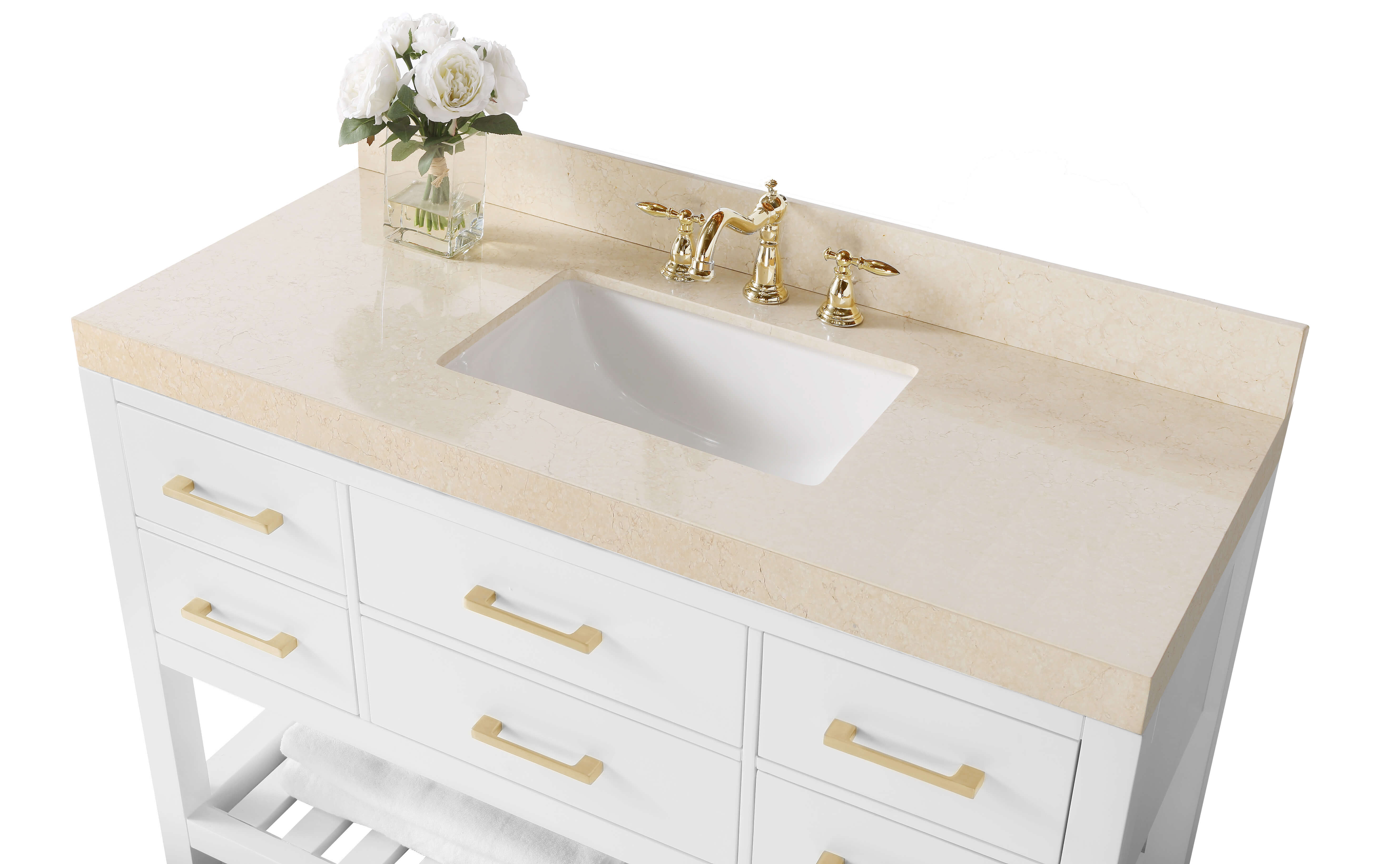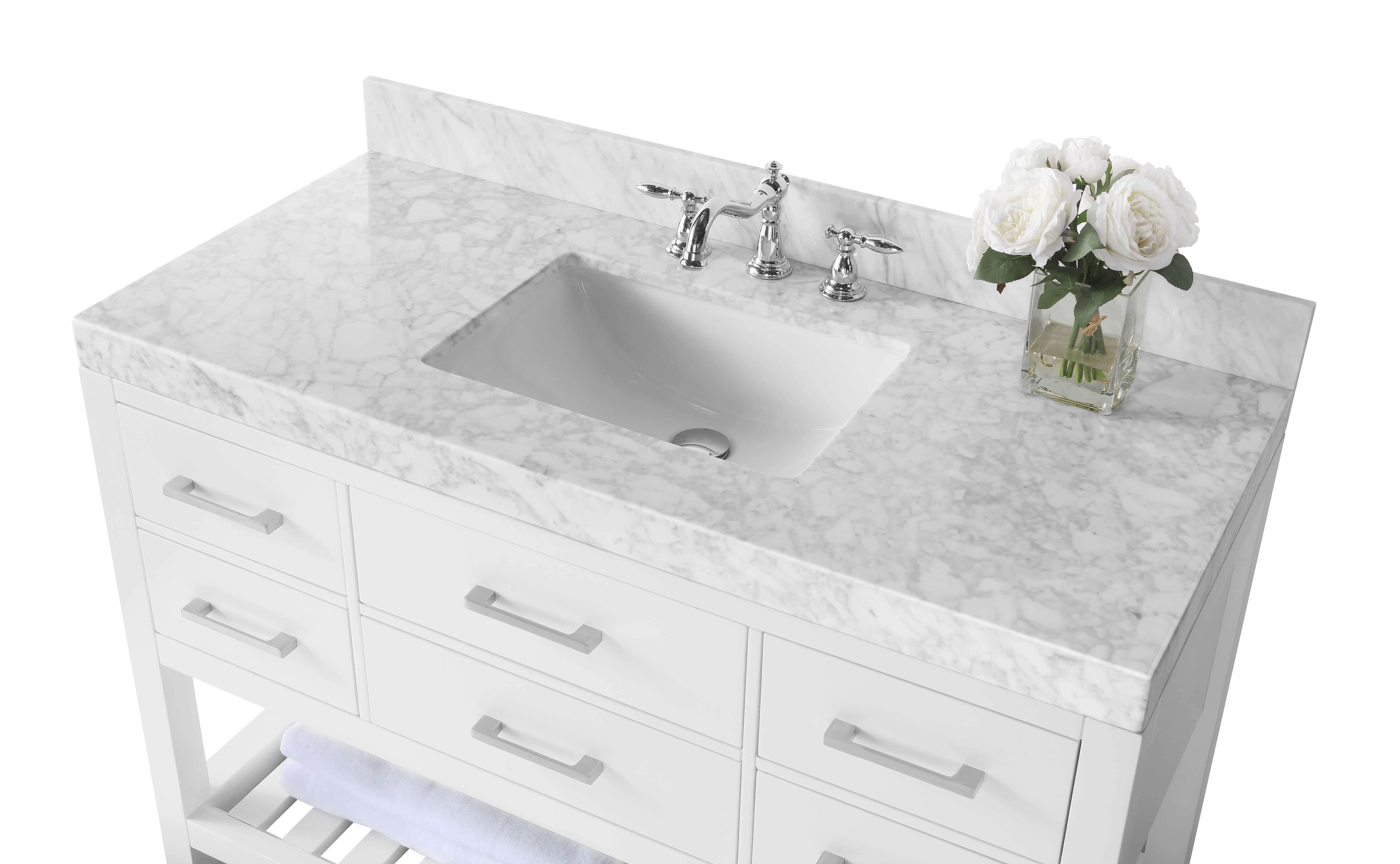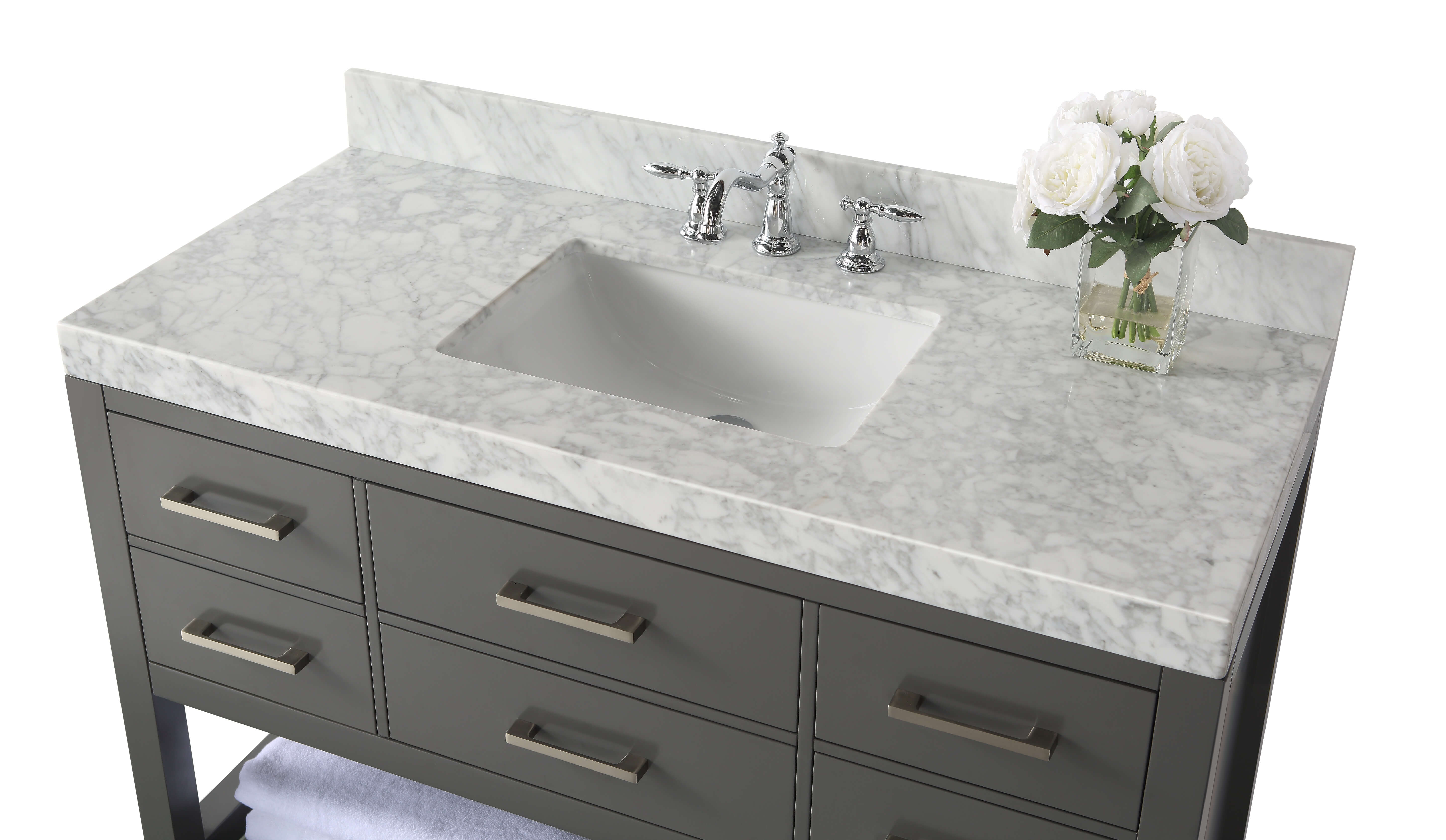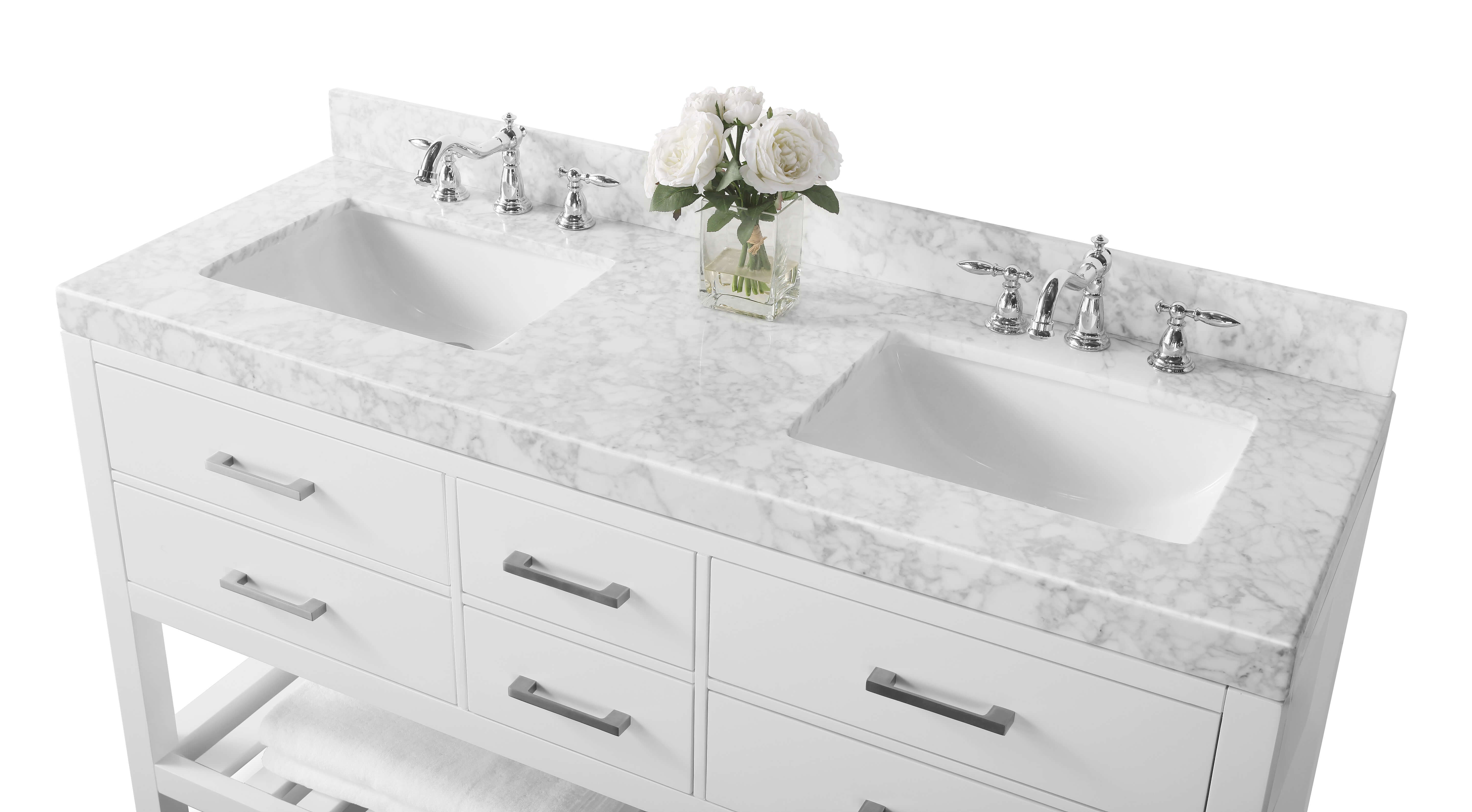 2.4-inch Italian Carrara White marble top with 4-inch backsplash