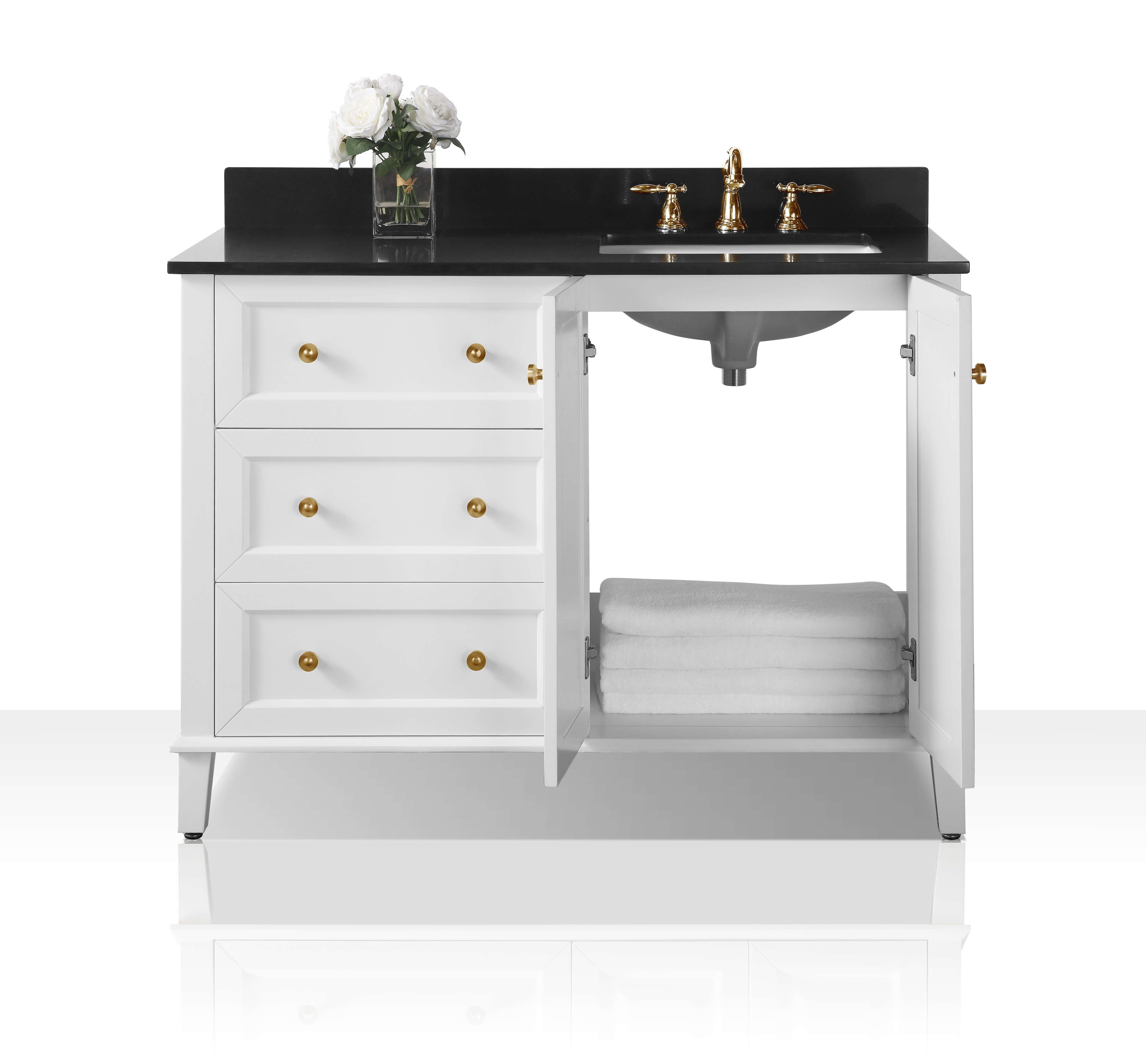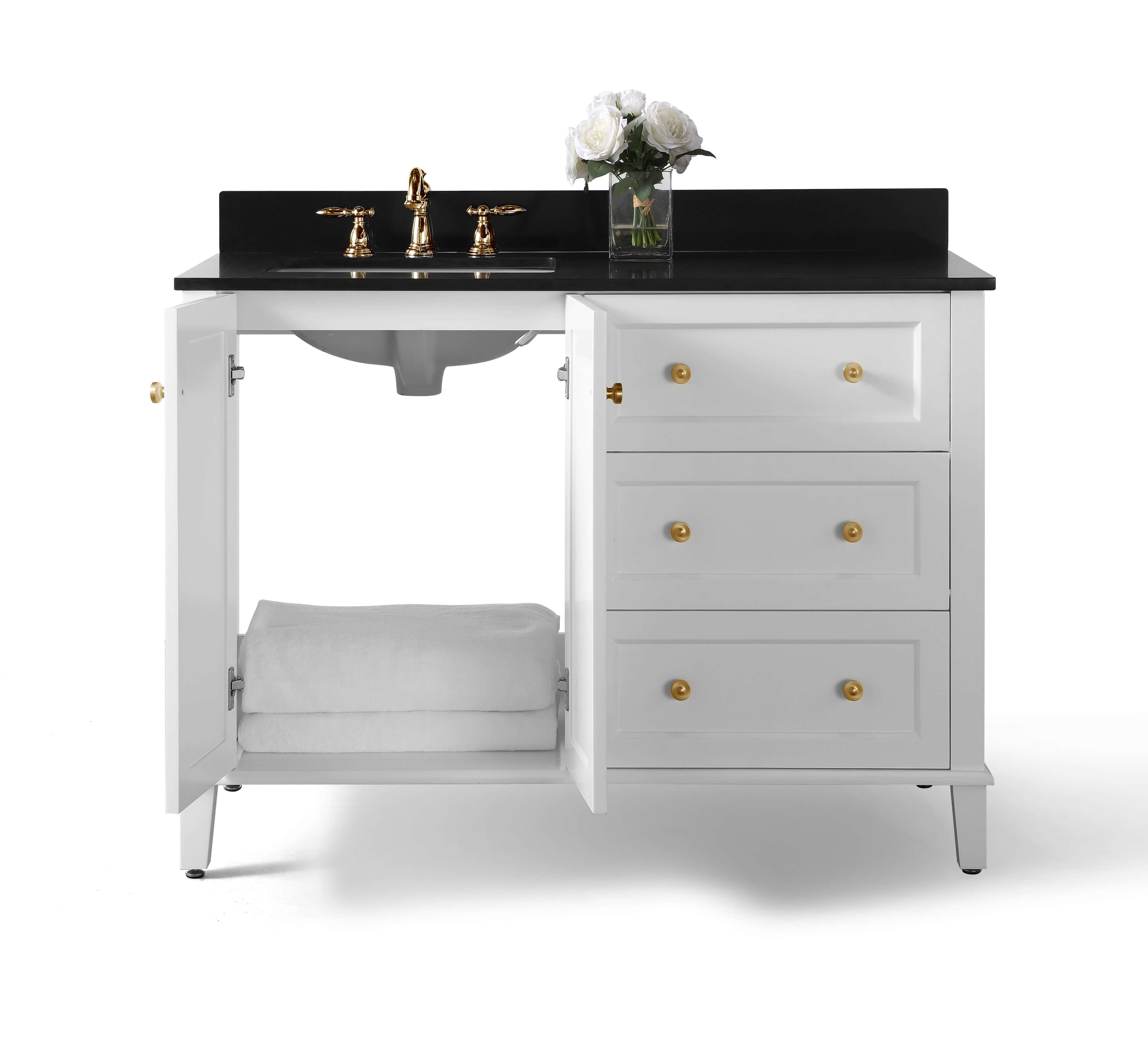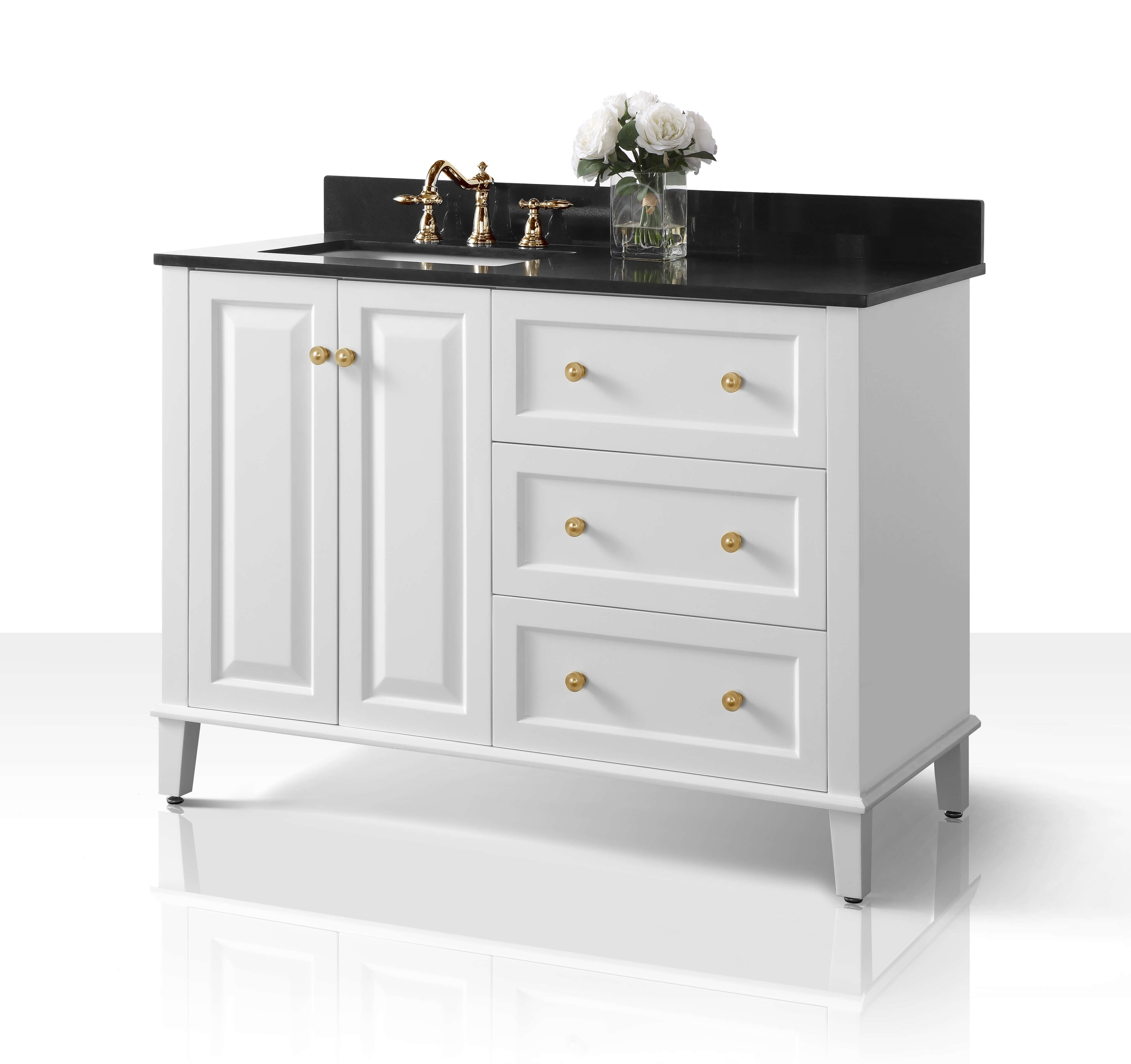 Right Basin | White Finish | Black Quartz Top | Gold Hardware