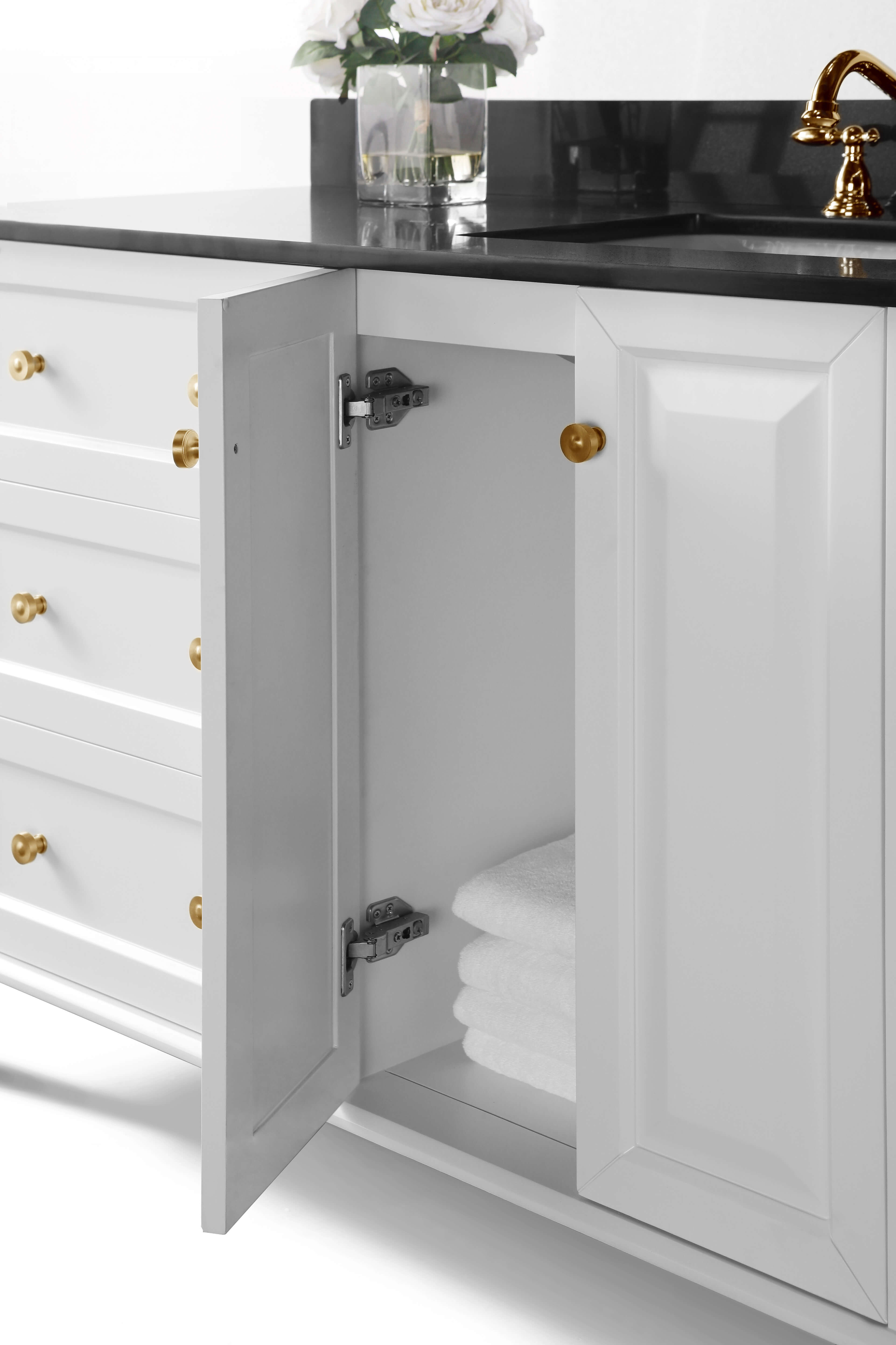 Left Basin | White Finish | Black Quartz Top | Gold Hardware
