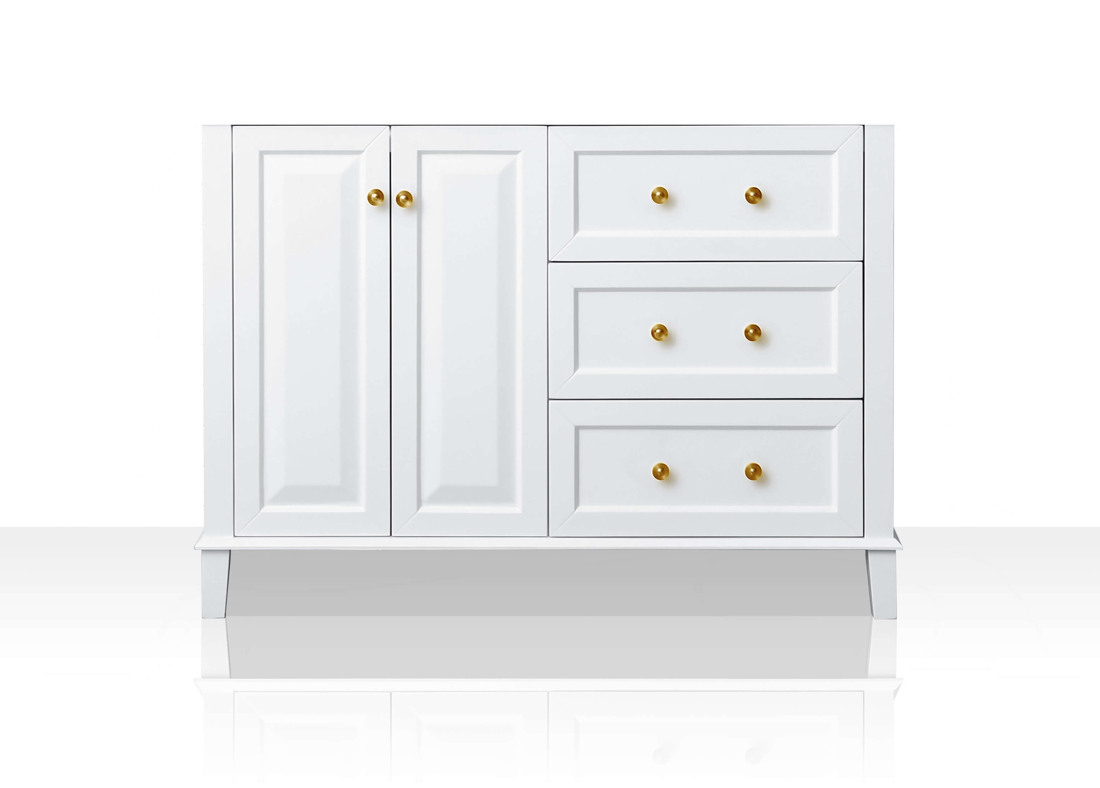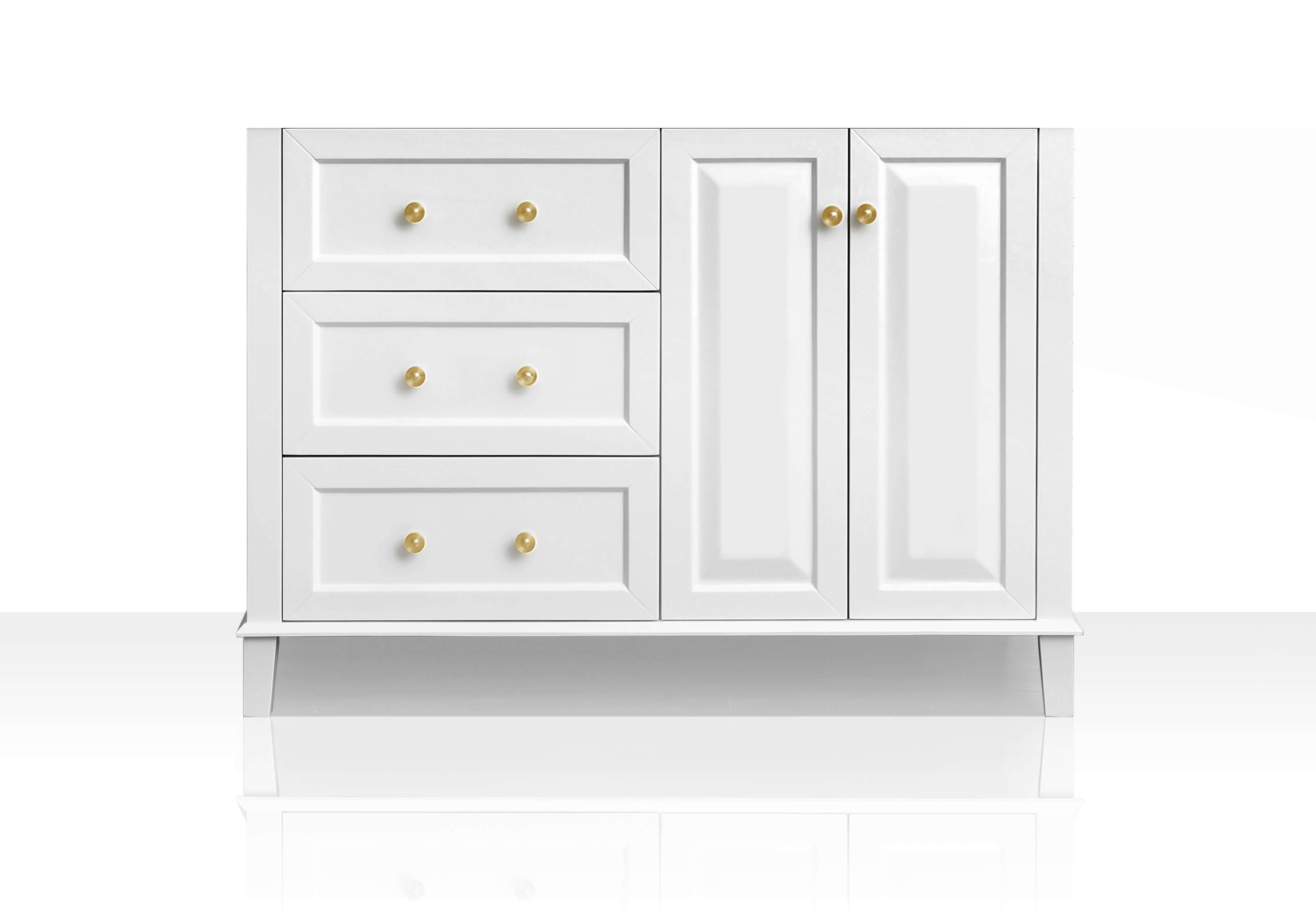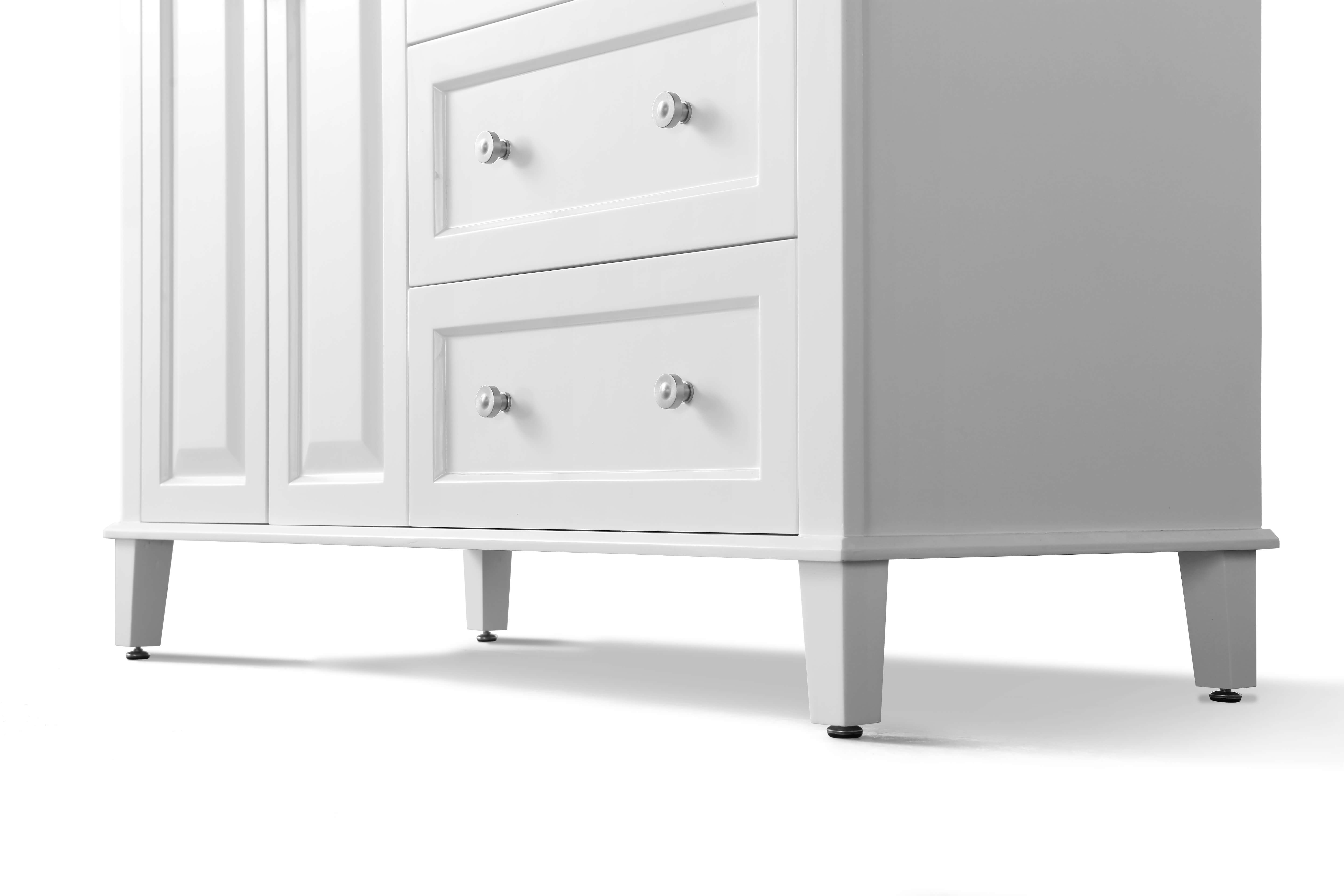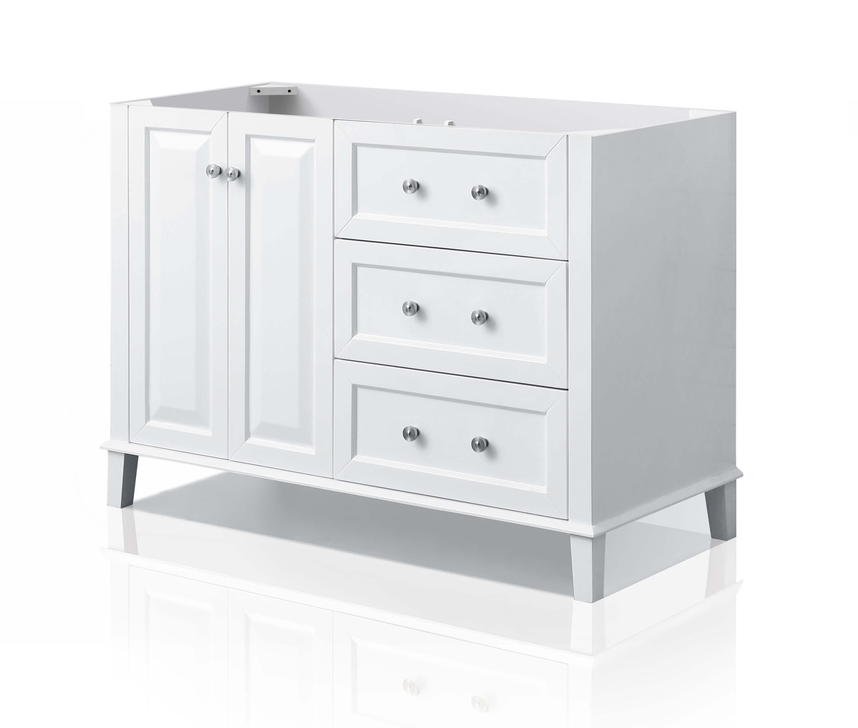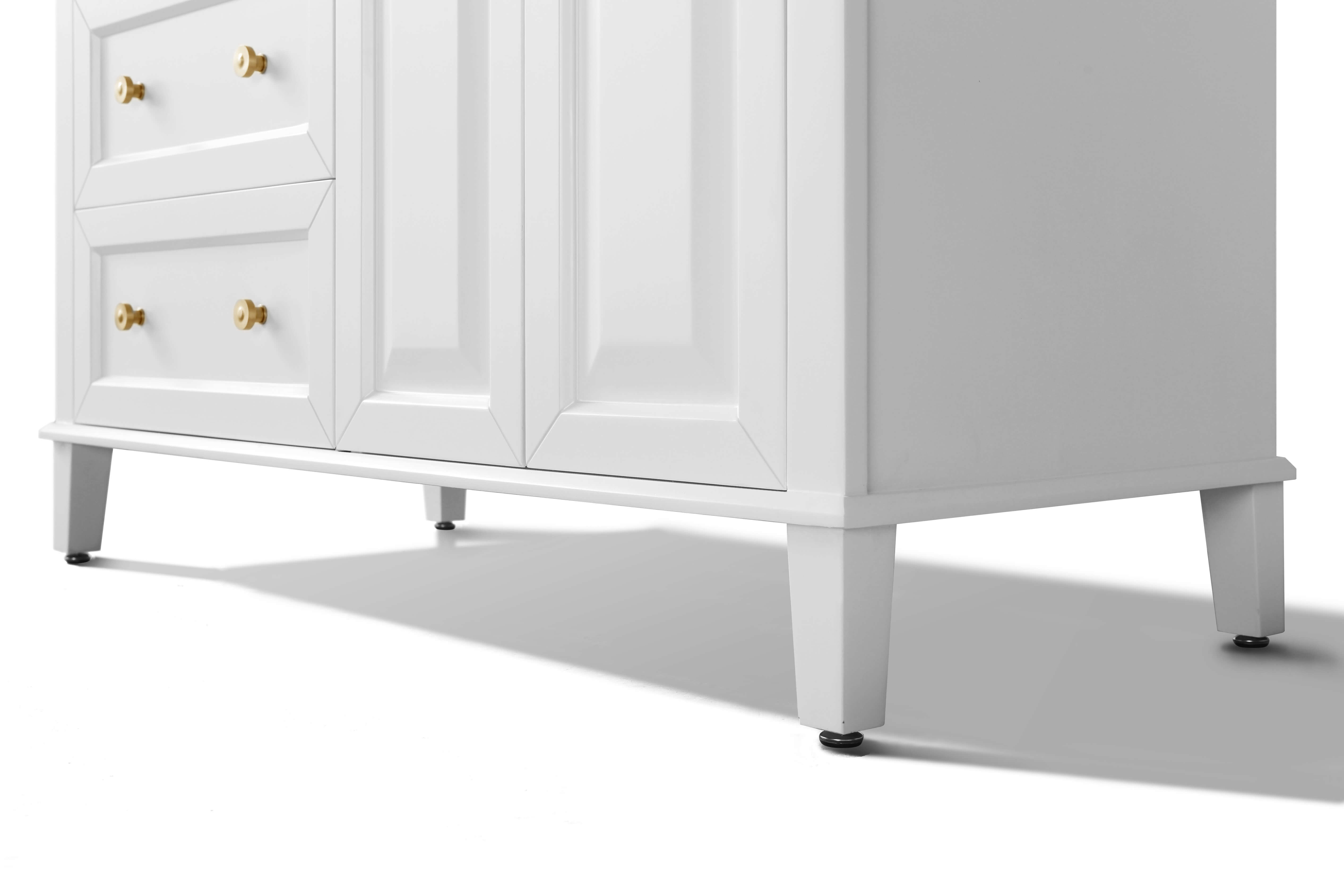 With its refined form and elegant lines, the Hannah Collection brings beauty to any space. Practically all of your bath ware can be stored within the Hannah’s three large drawers. From selecting quality wood to using the most durable soft-close hardware, no details were overlooked in crafting the Hannah 48-inch vanity set.