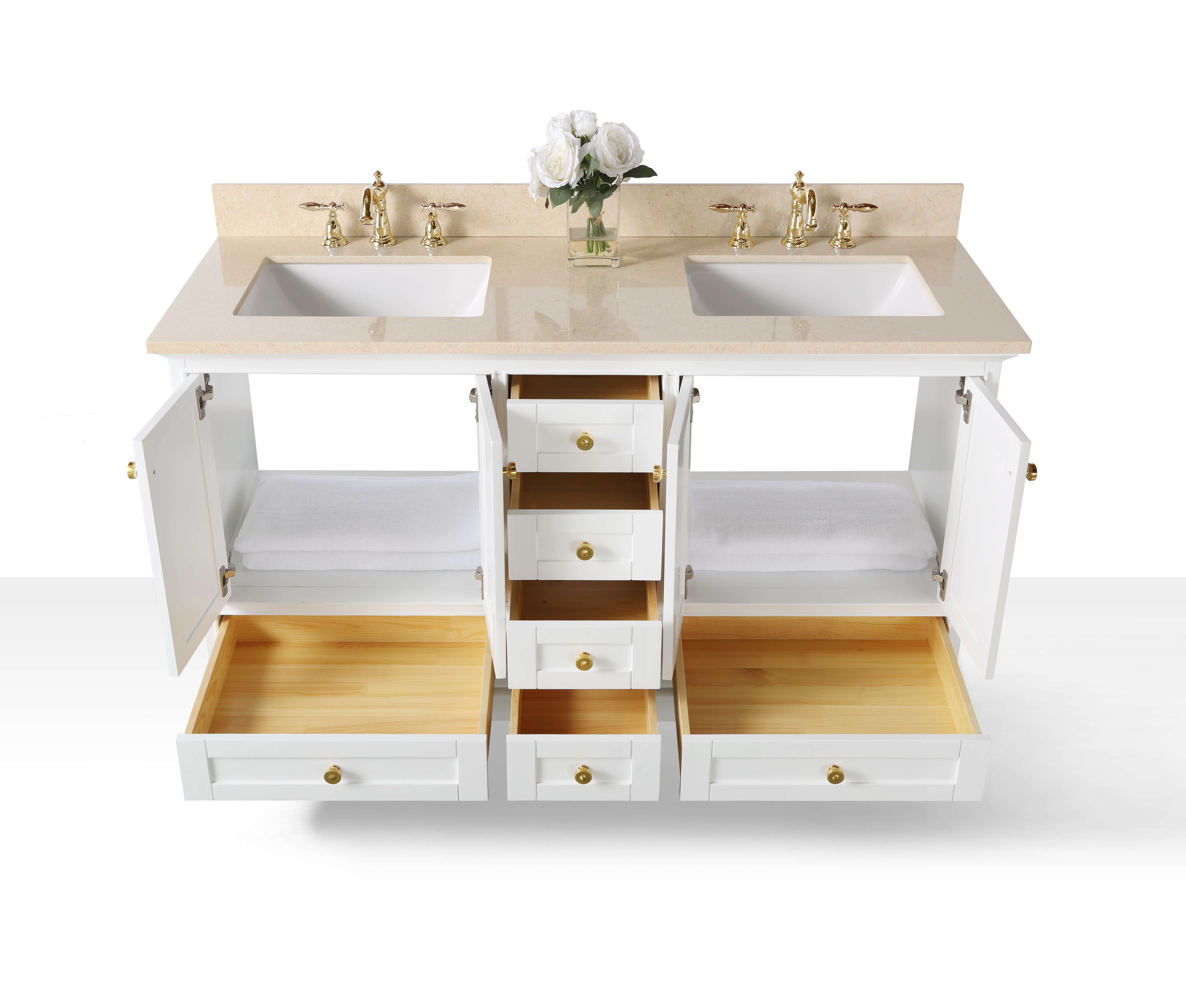 White Finish | Galala Beige Top | Brushed Nickel Hardware