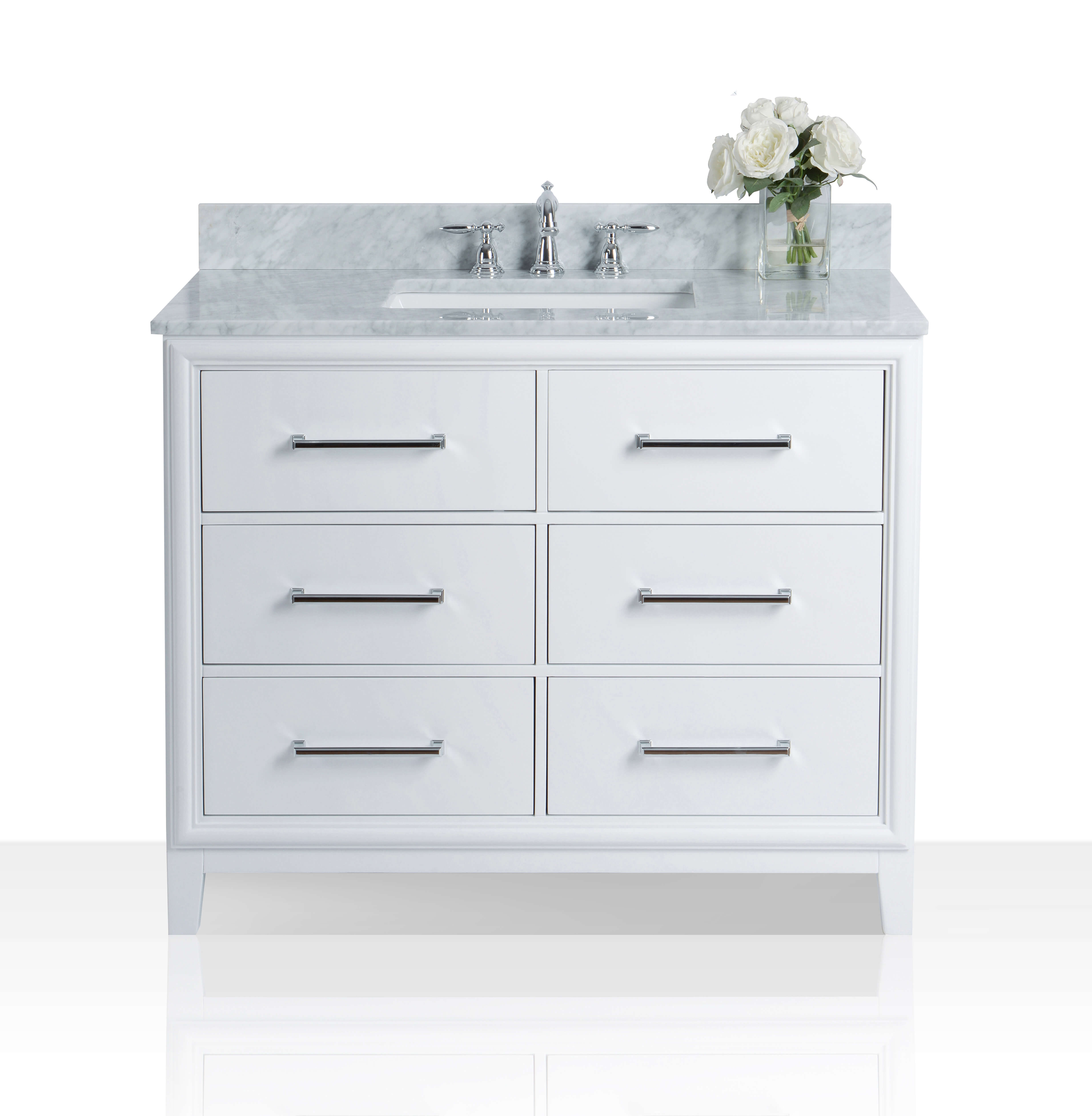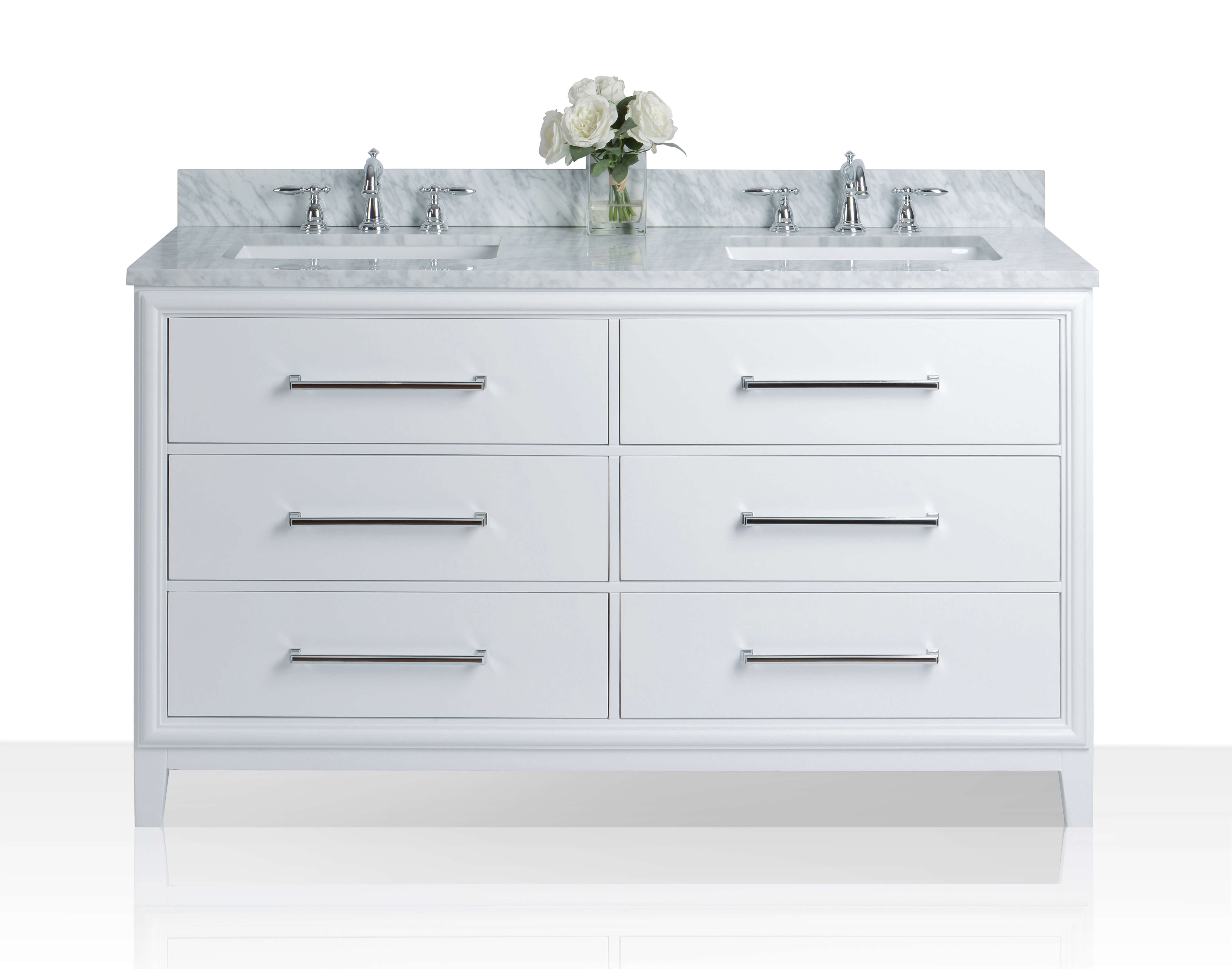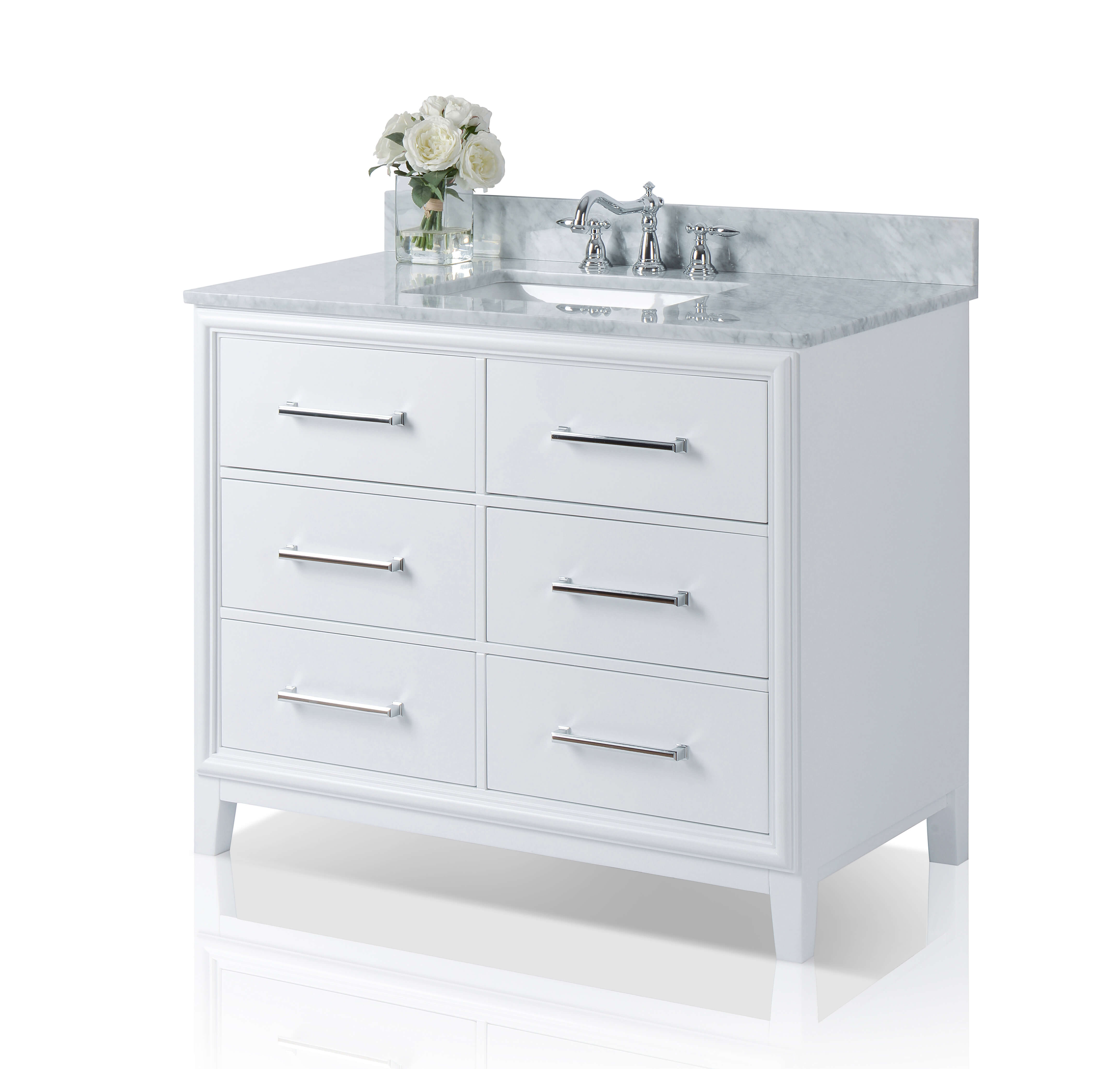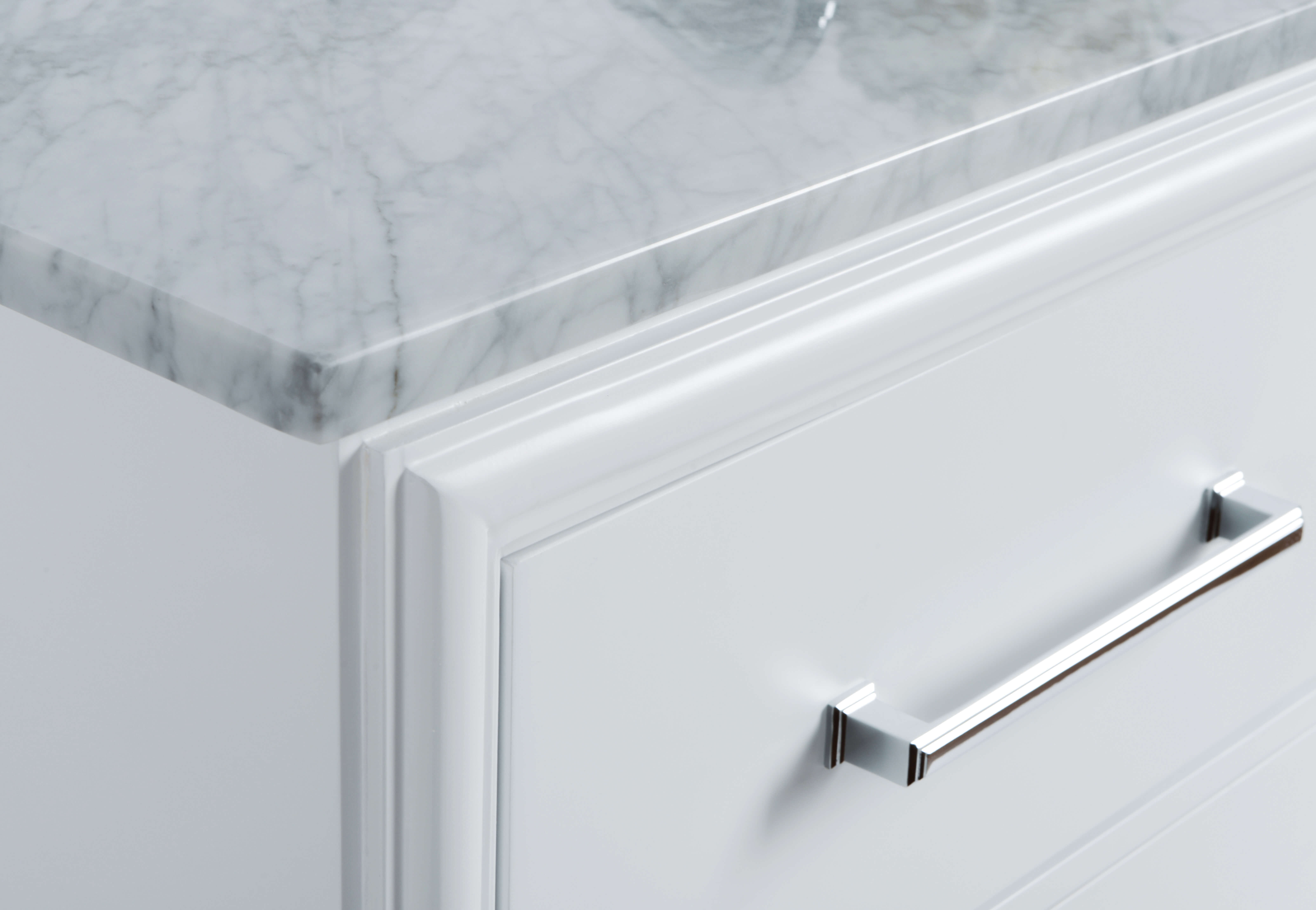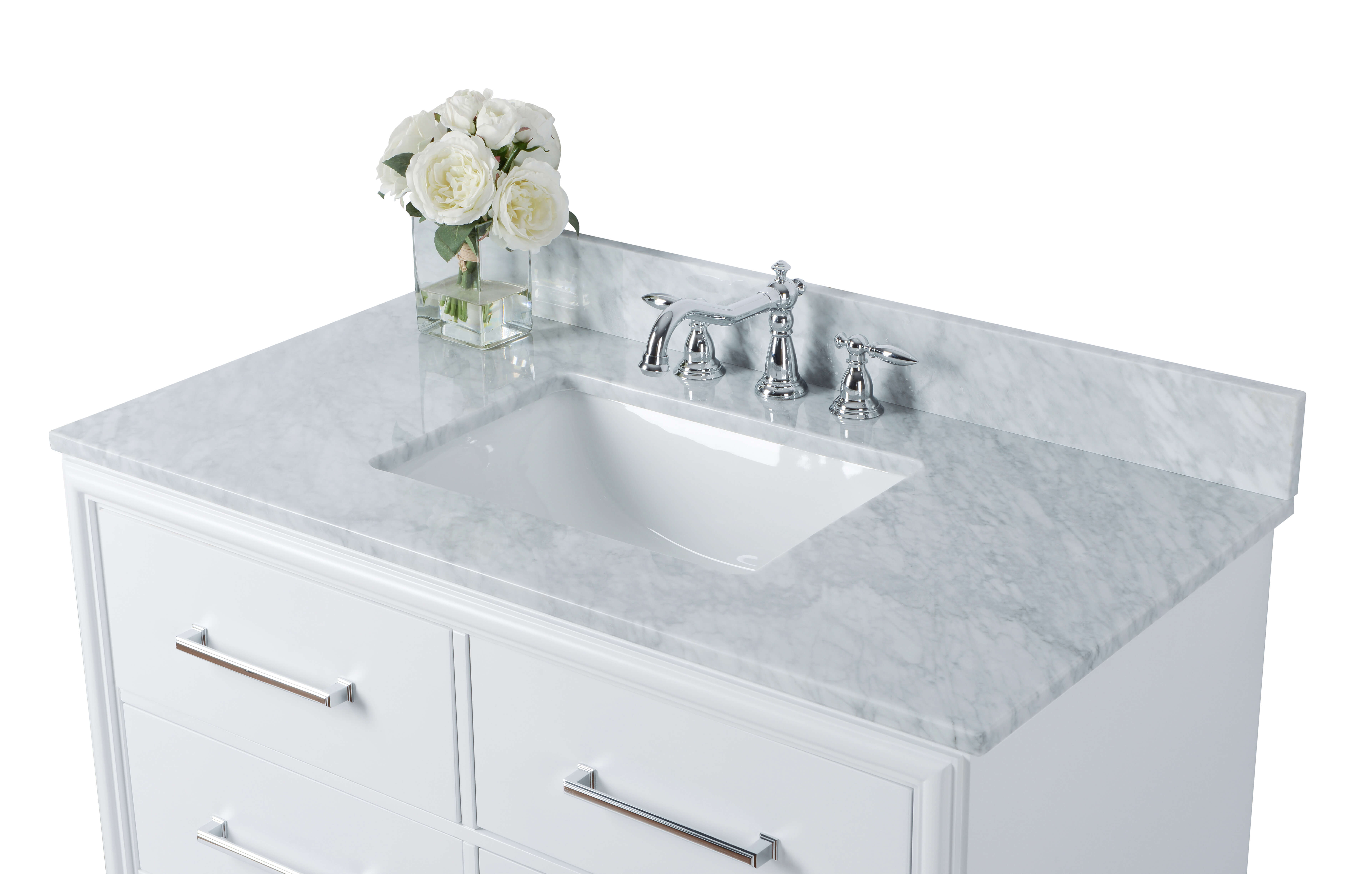 White Finish | Carrara White Marble Top | Polished Chrome Hardware