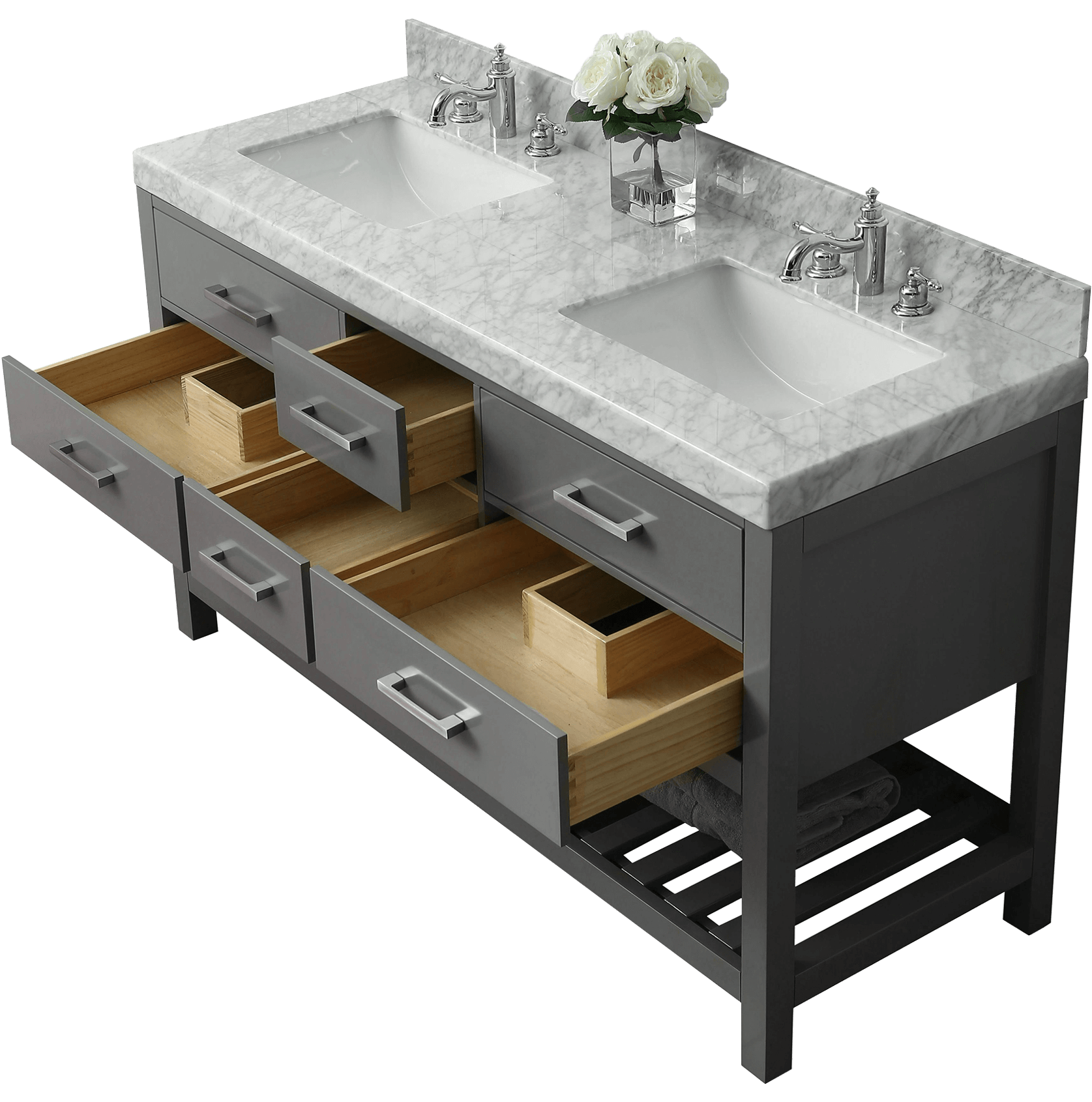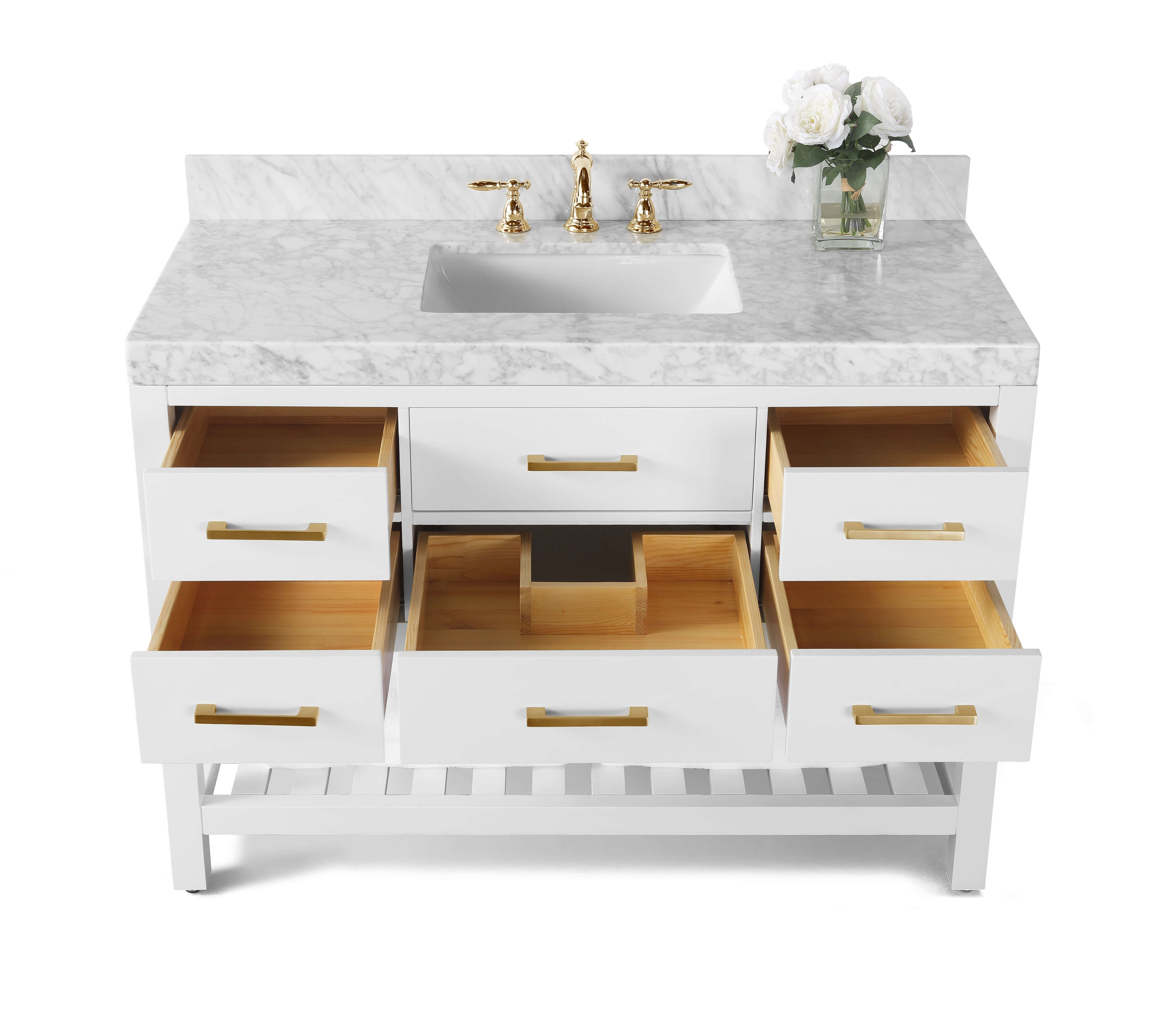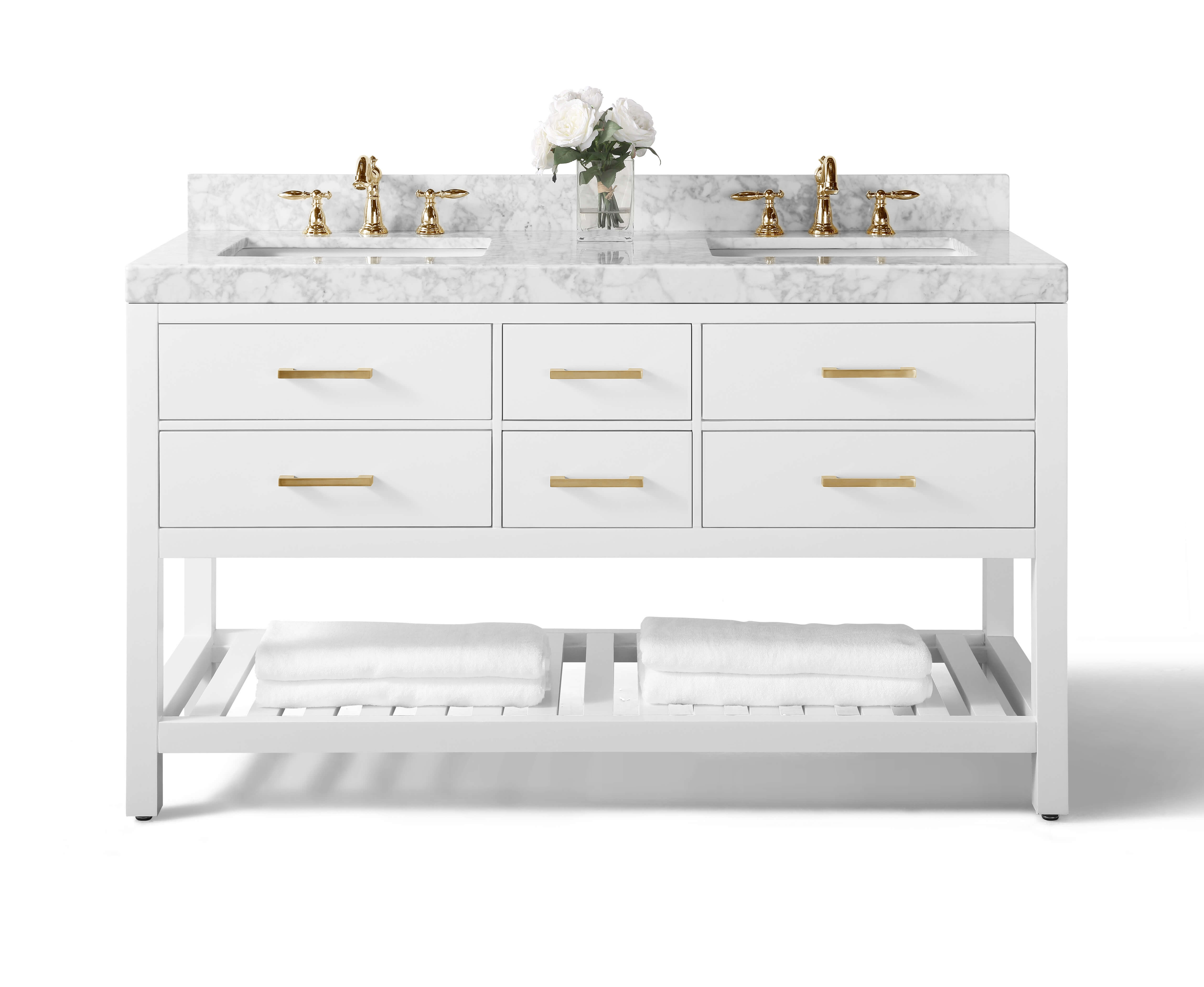 2.4-inch Italian Carrara White marble top with 4-inch backsplash