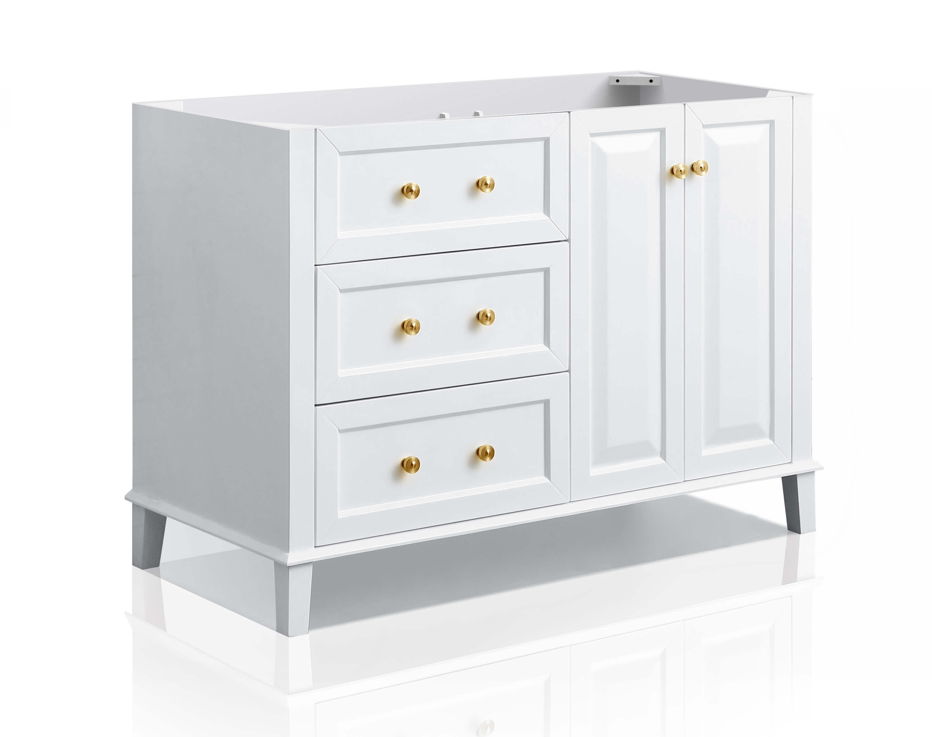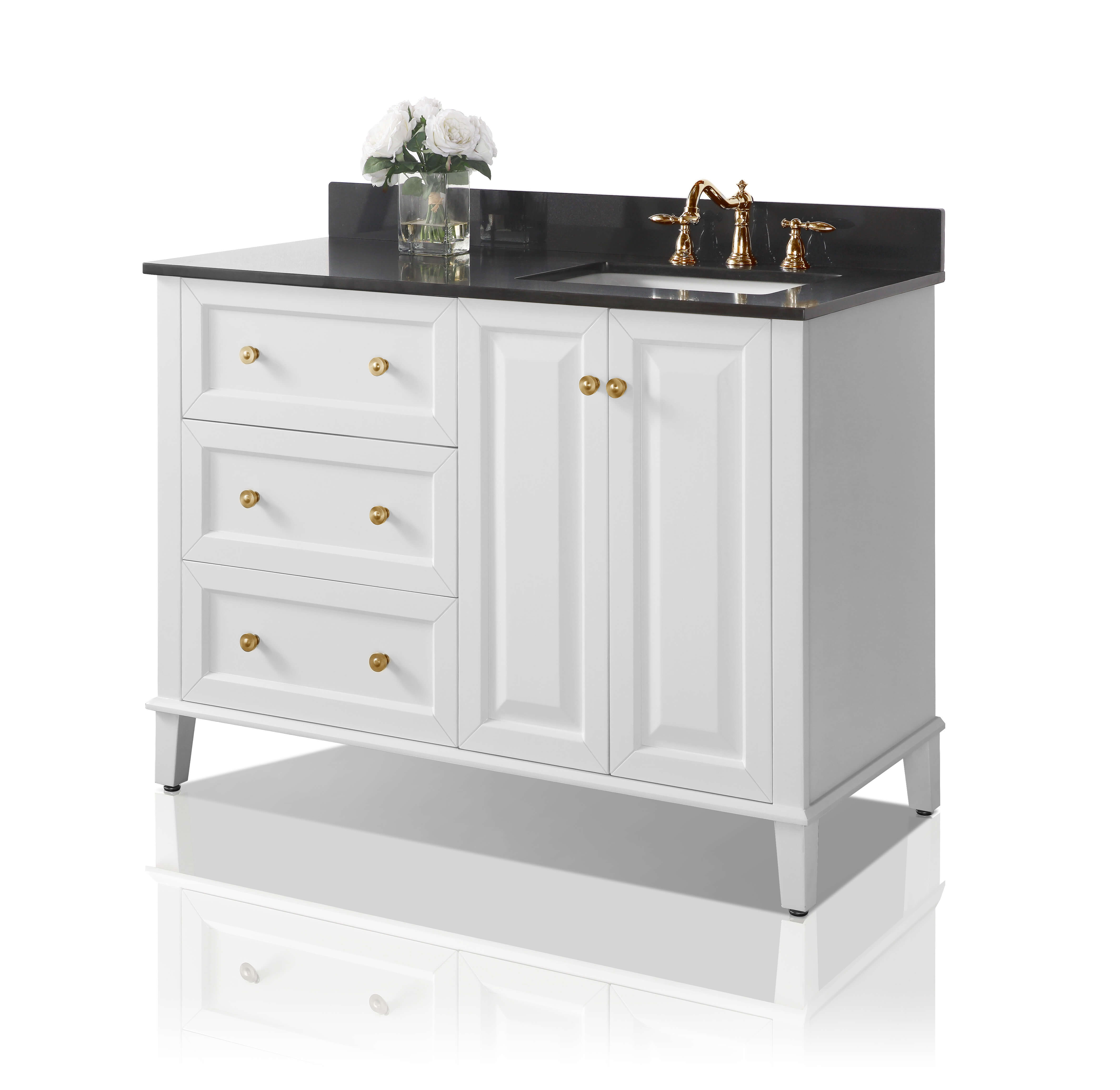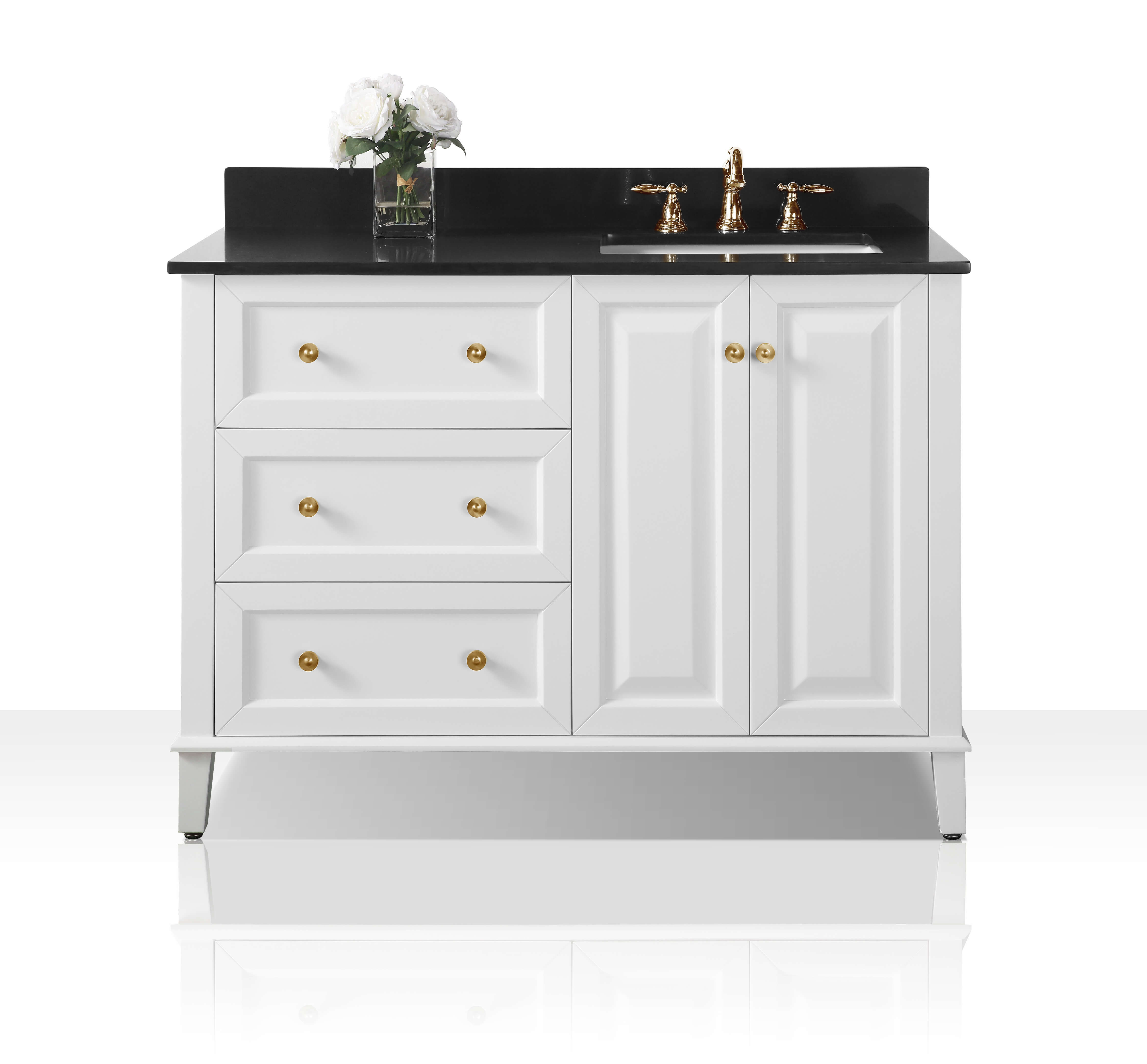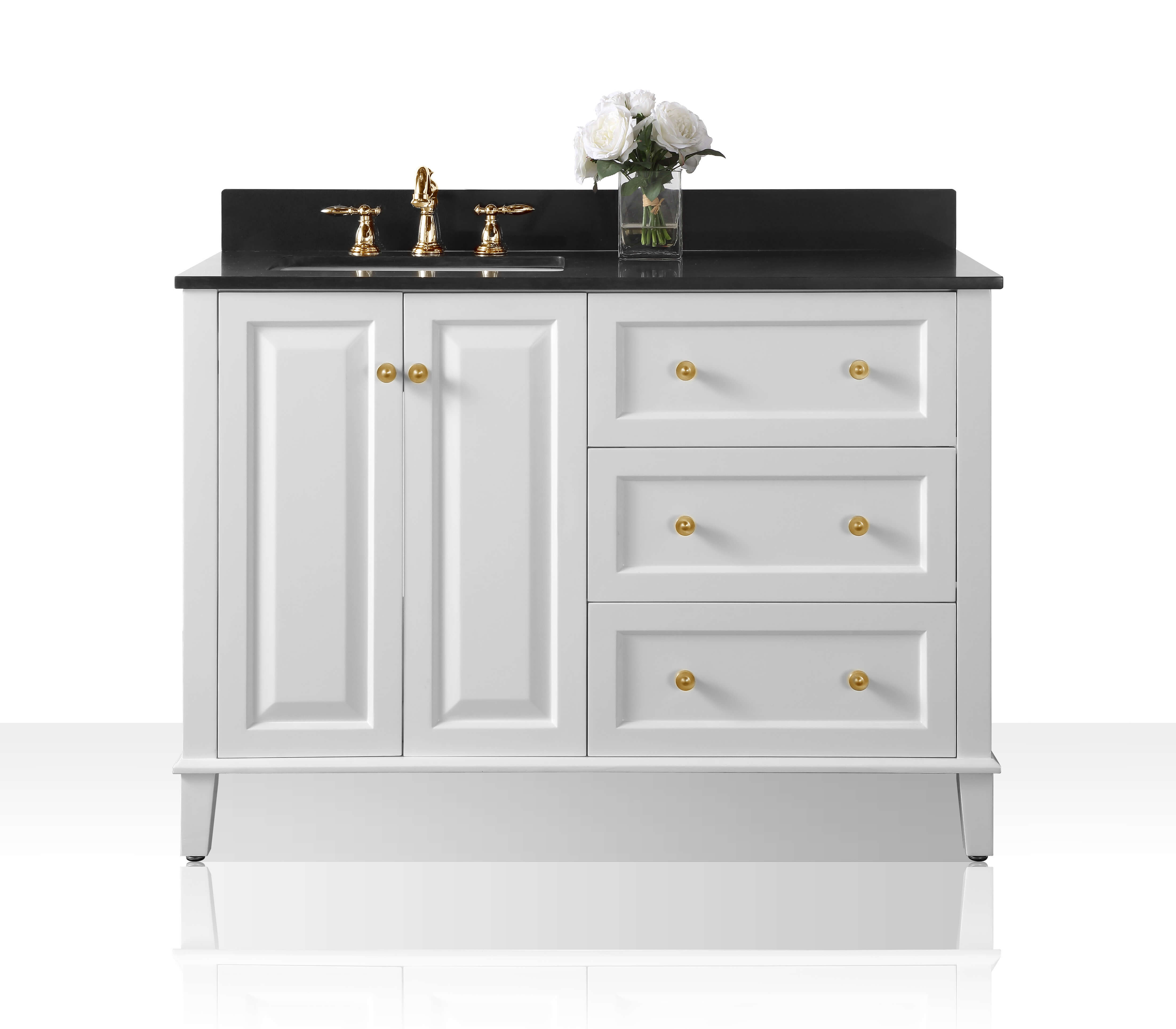 Right Basin | White Finish | Black Quartz Top | Gold Hardware