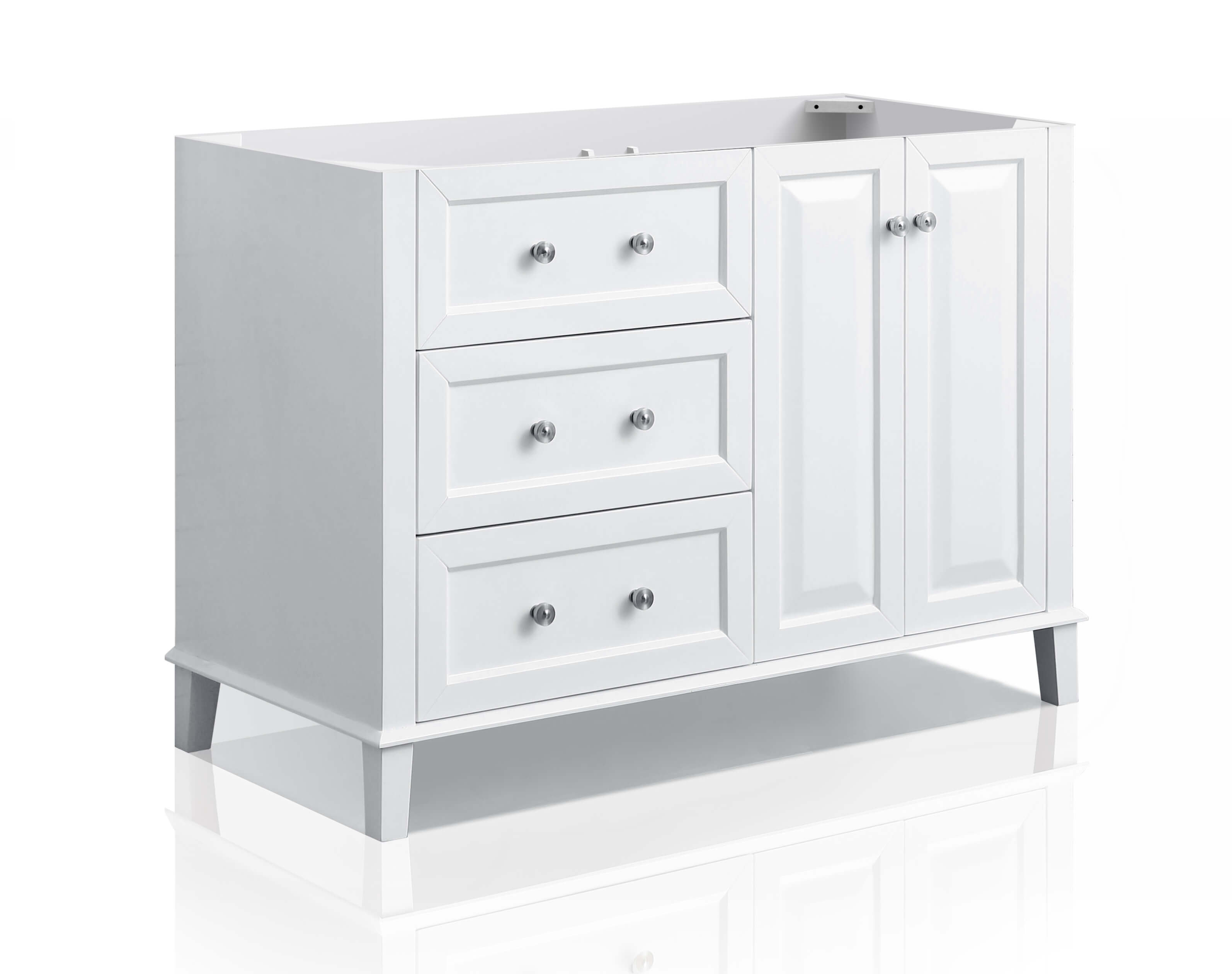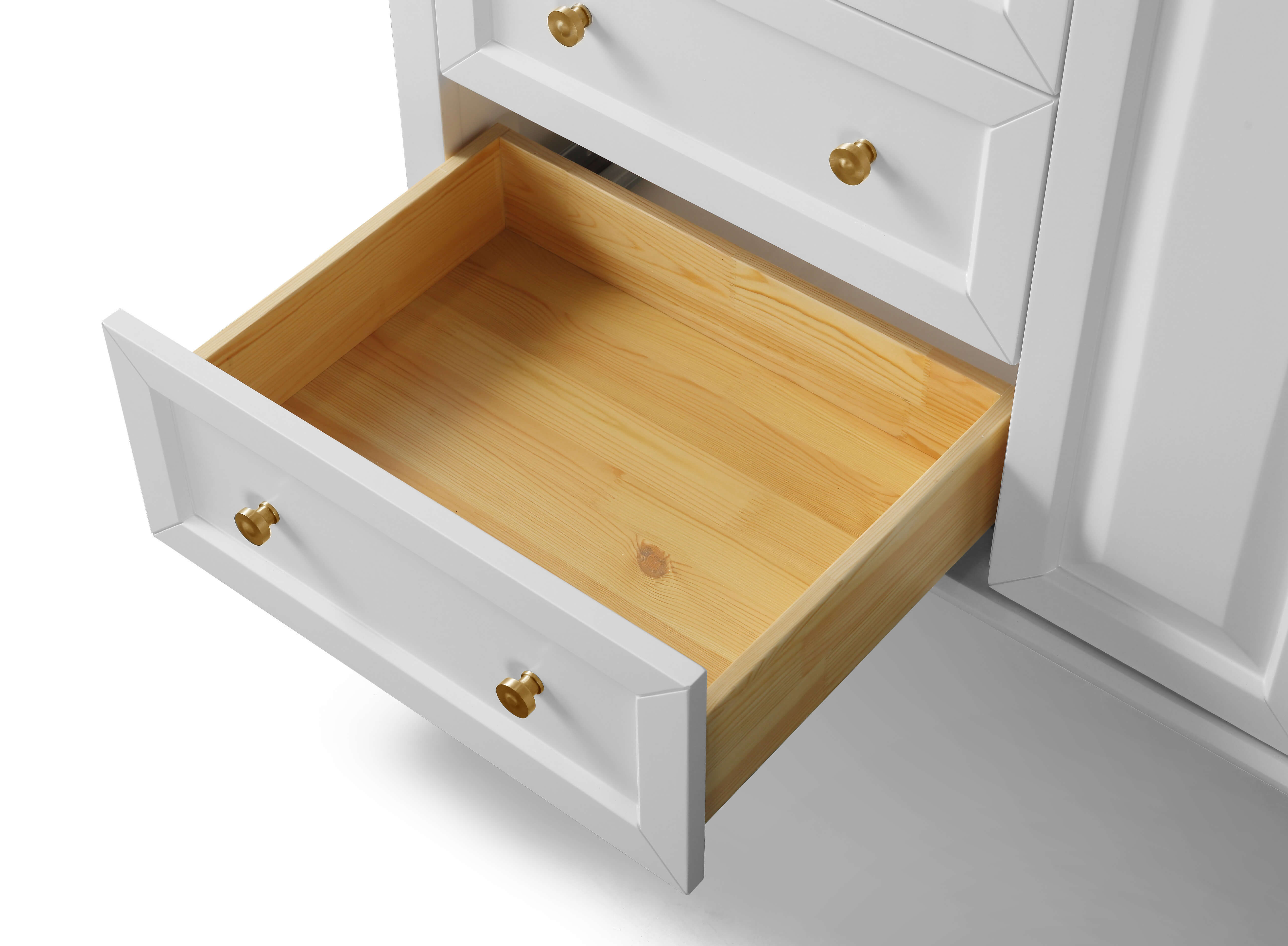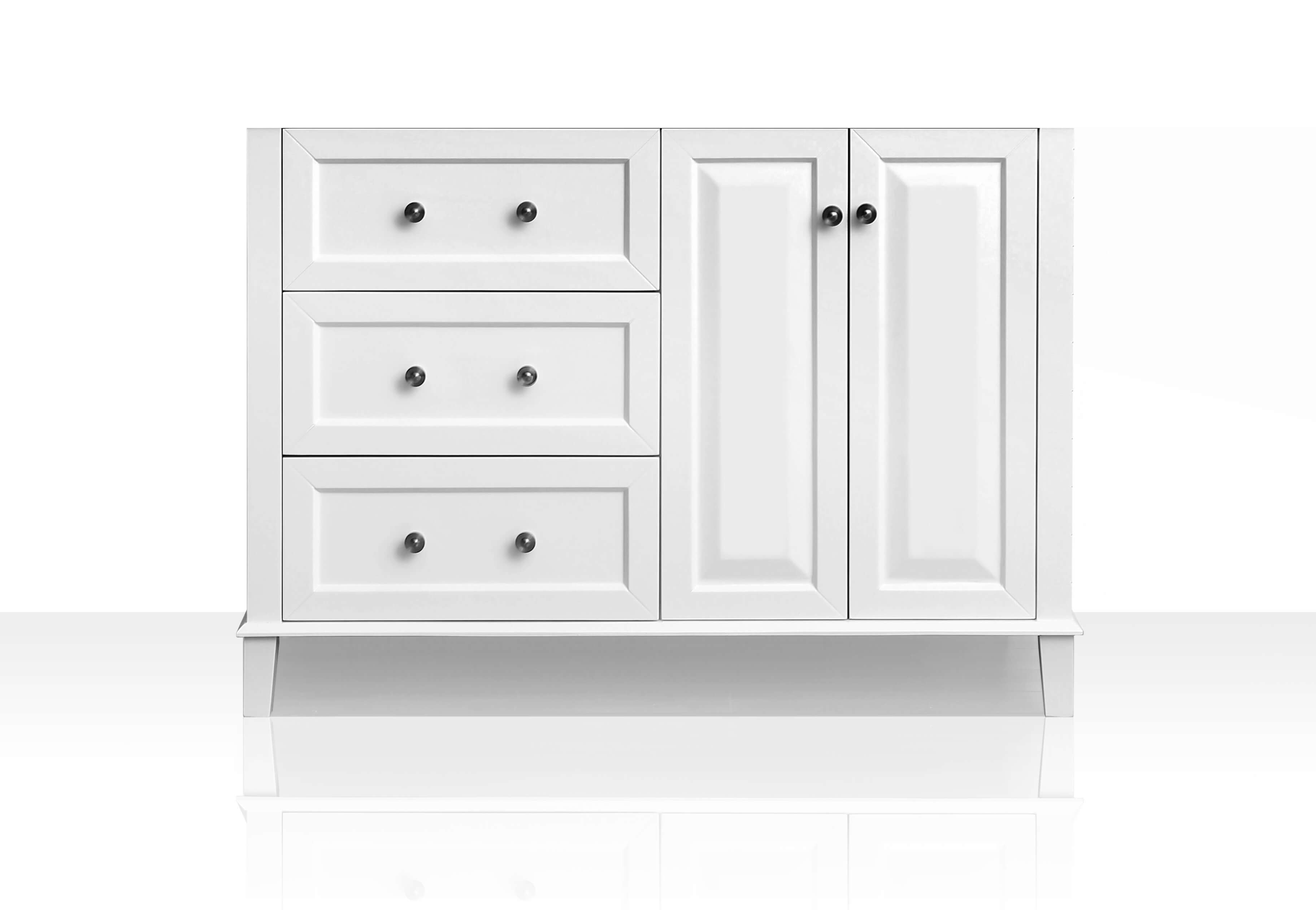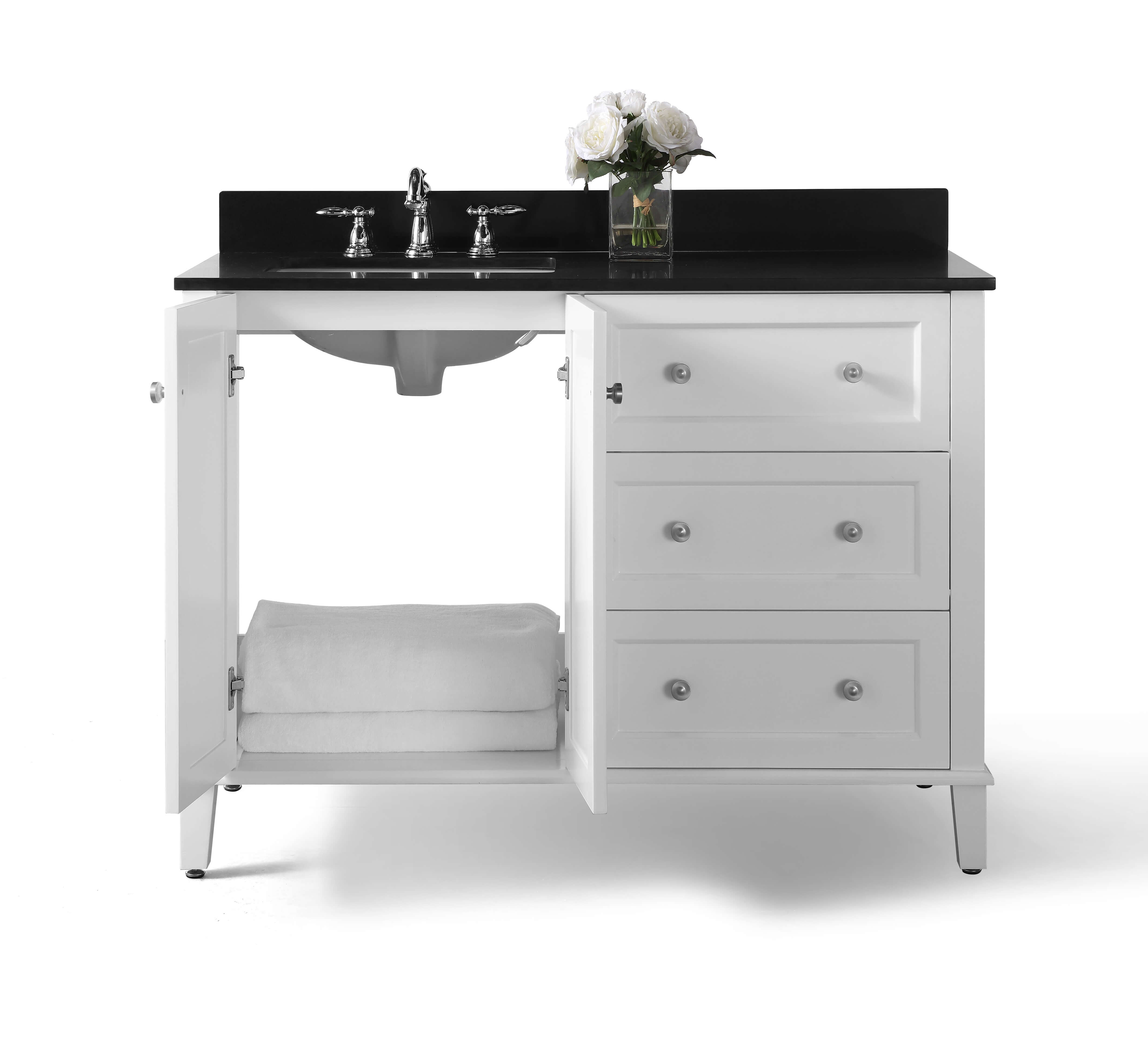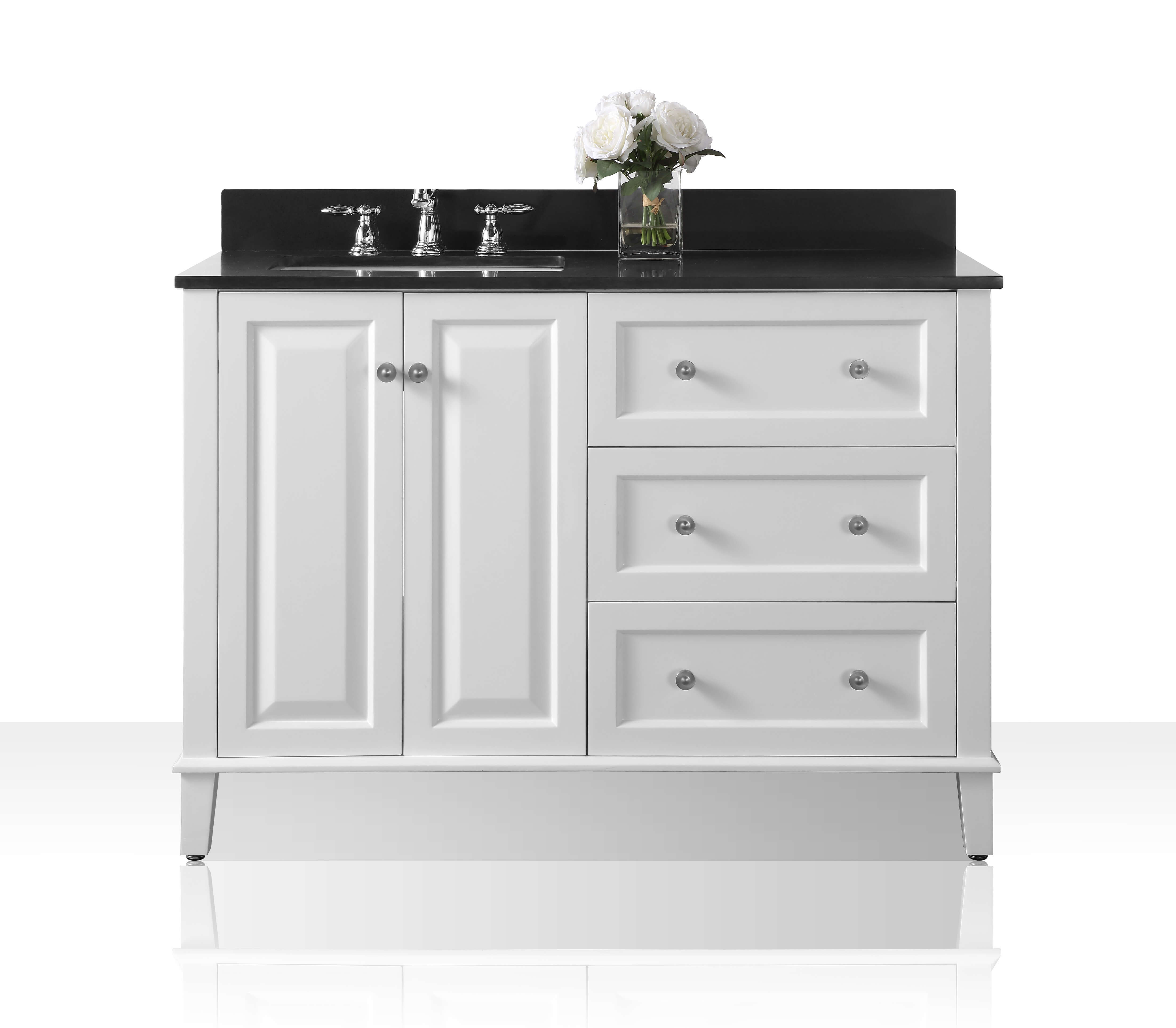 With its refined form and elegant lines, the Hannah Collection brings beauty to any space. Practically all of your bath ware can be stored within the Hannah’s three large drawers. From selecting quality wood to using the most durable soft-close hardware, no details were overlooked in crafting the Hannah 48-inch vanity set.