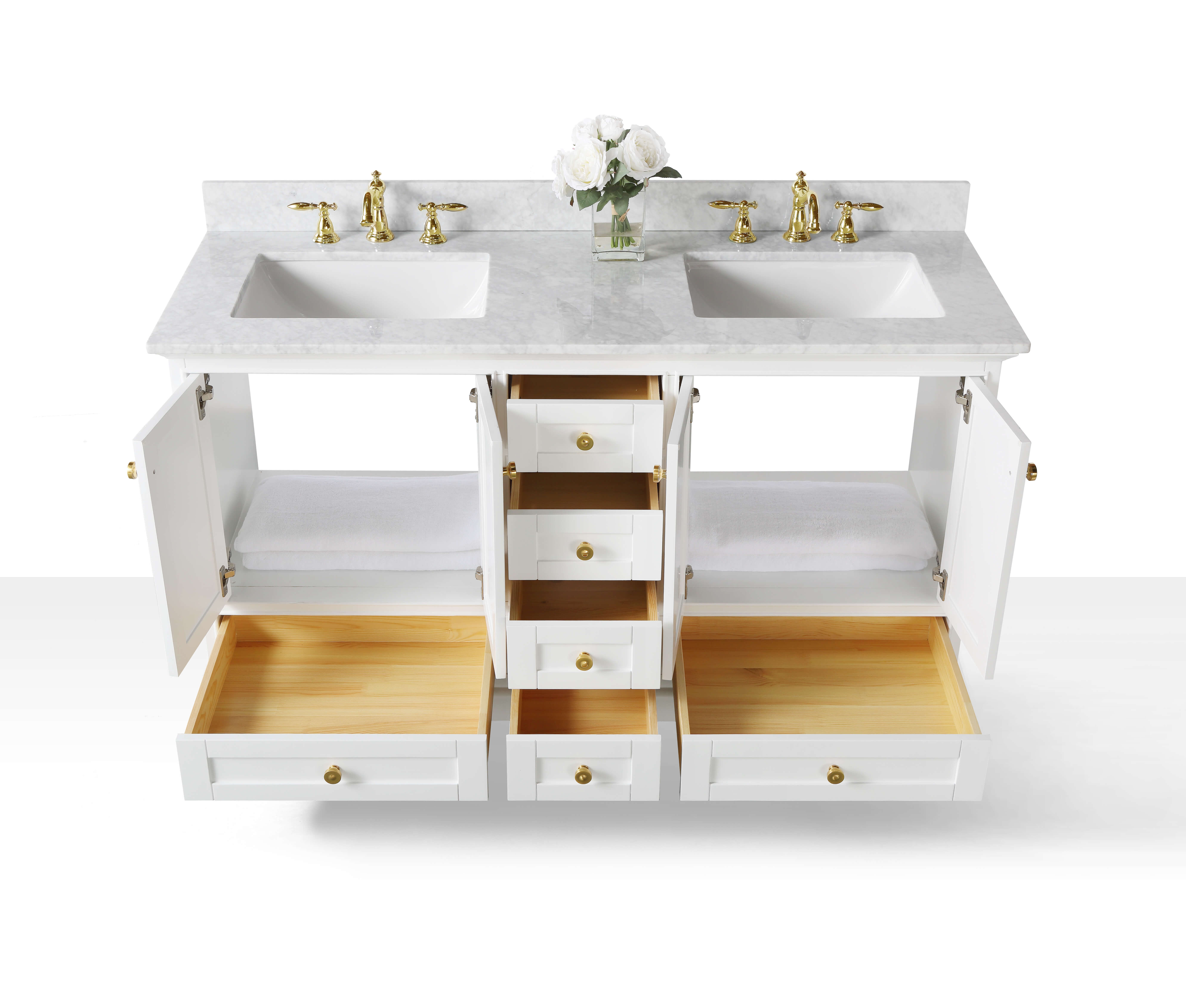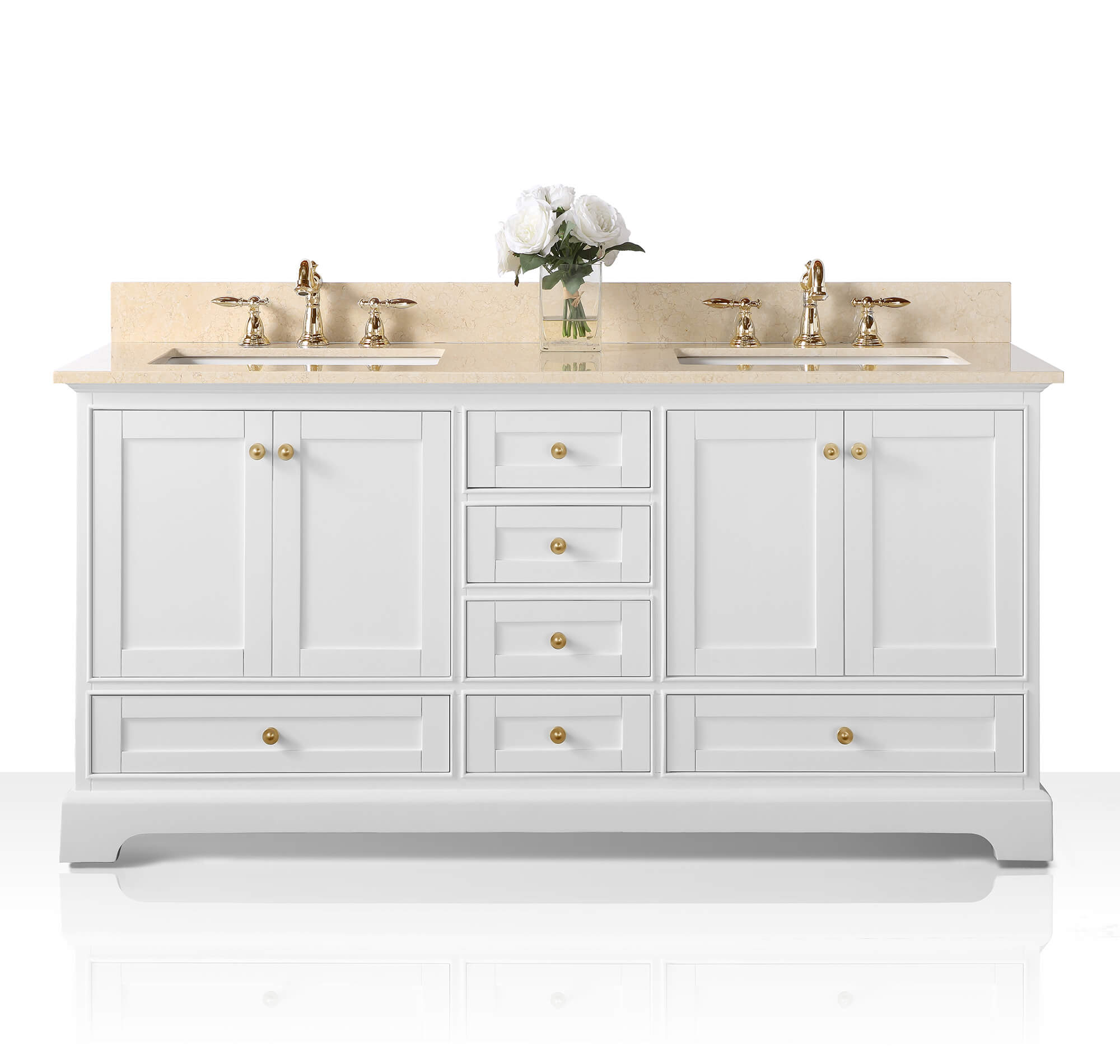 White Finish | Galala Beige Top | Brushed Nickel Hardware