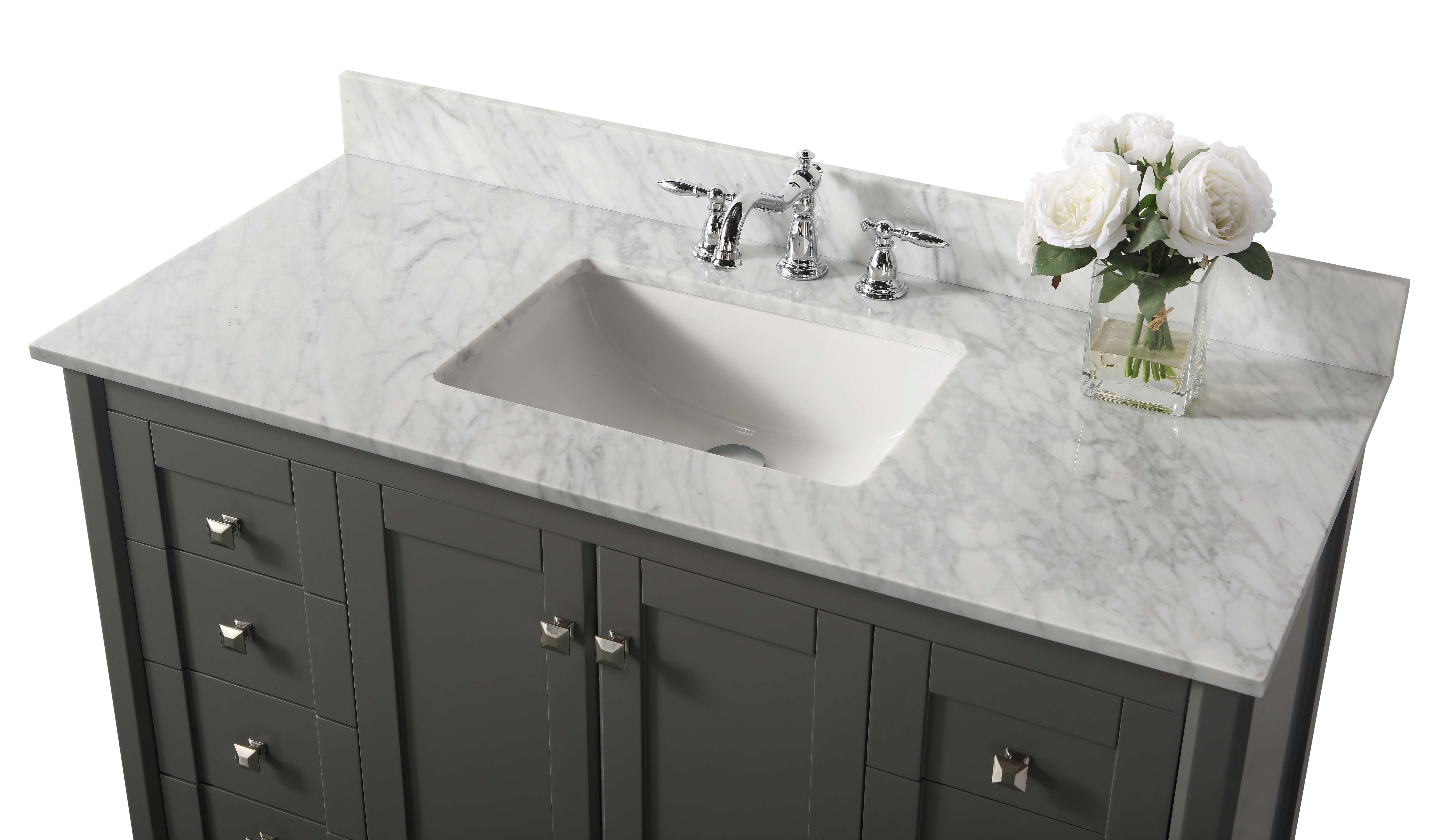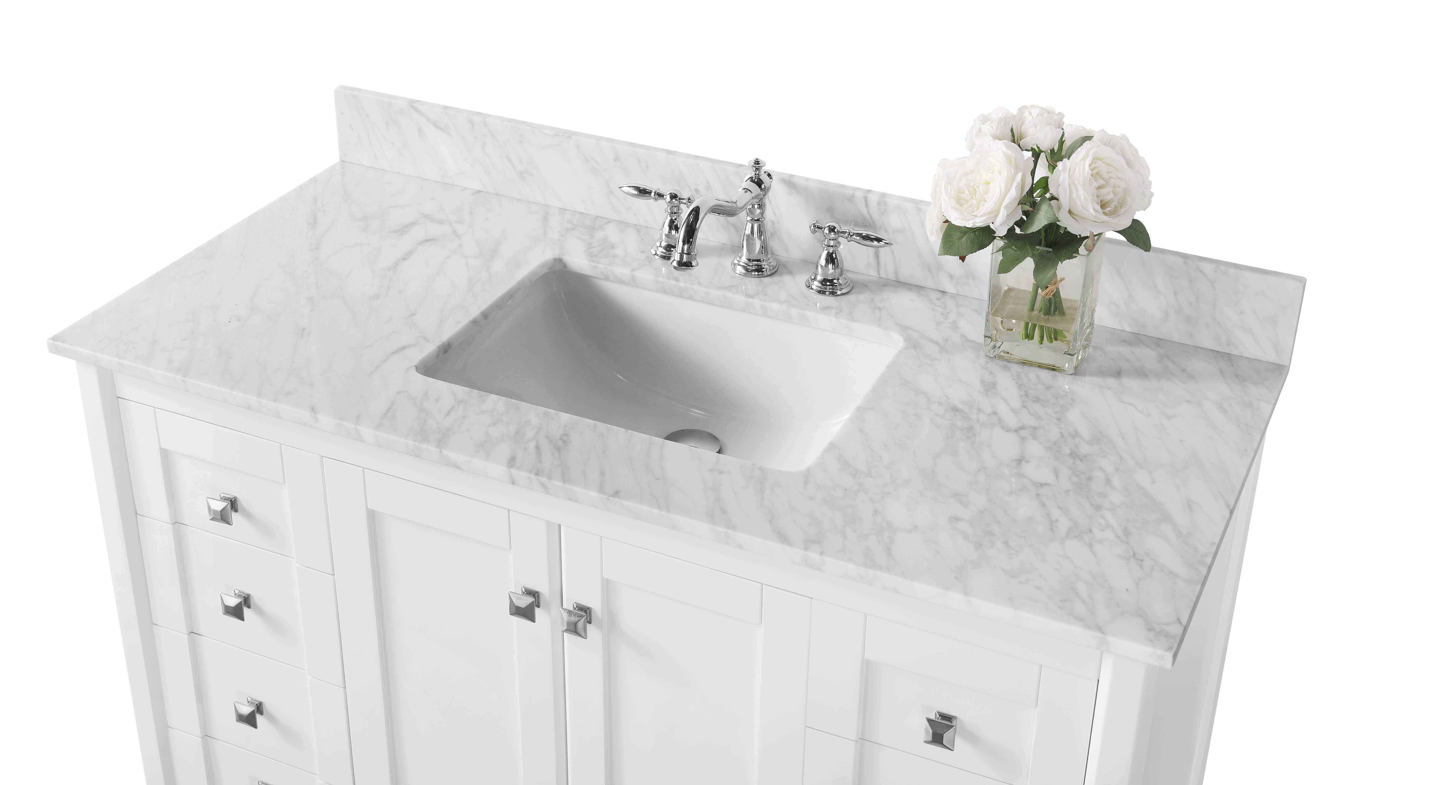 Imported Italian Carrara White marble top with 4-inch backsplash
