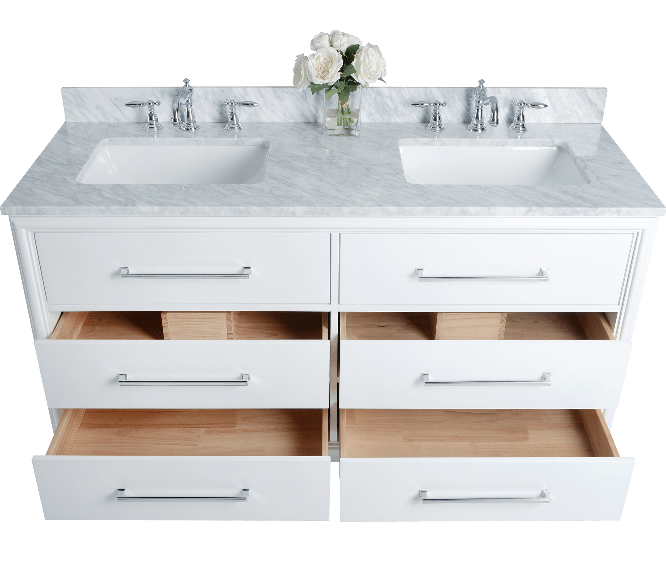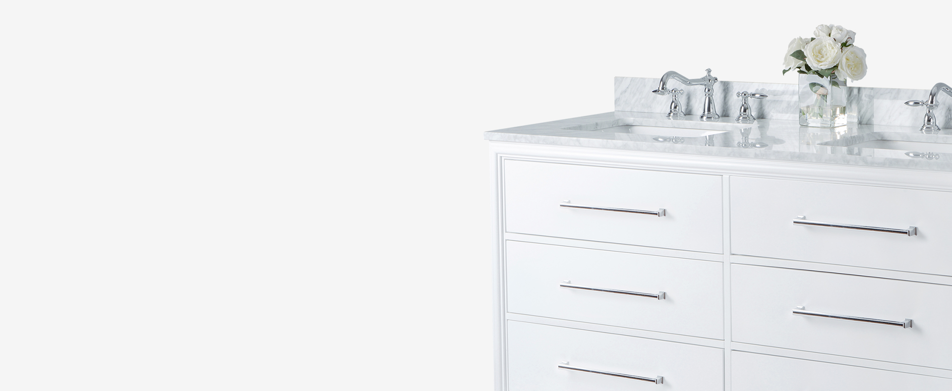 White Finish | Carrara White Marble Top | Polished Chrome Hardware